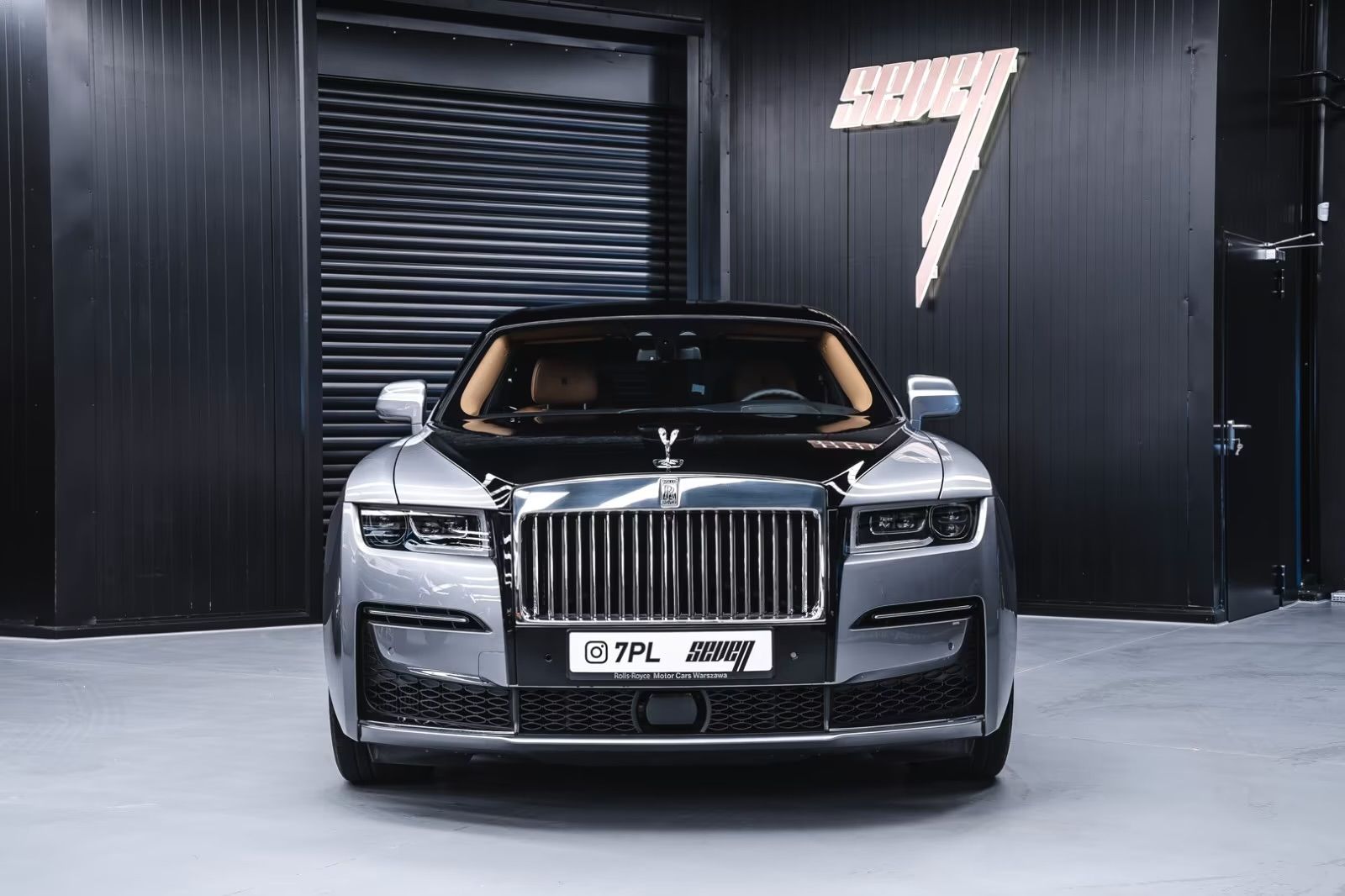 Rolls-Royce Ghost 2022 Colour: Jubilee Silver / Black Diamond top Upholstery: Tan PRICE: €392,700 (330,000 € - (net), 19% VAT) Mileage: 10,700 km Performance: 441 kW (600 HP) Fuel type: Gasoline Gears: Automatic Initial registration: 02/2022 SPECIFICATIONS Vehicle condition: Used vehicle Category: Limousine Series: RR21 Mileage: 10,700 km Performance: 441 kW (600 HP) Drive type: Internal combustion engine Fuel type: Gasoline Energy consumption (combined): 15.0 l/100km CO2 emissions (combined): 347 g/km Number of seats: 5 Number of doors: 4/5 Gears: Automatic Emission class: Euro6d Initial registration: 02/2022 Parking aid: Rear, 360° camera, Self-steering systems, Front Color (Manufacturer): Jubilee Silver/Black Diamond top Color: silver ——— 7PL - Dealer Brabus & Topcar Design Address: Al. Jana Pawła II 27, 00-867 Warsaw, Poland Showroom: Krańcowa 3, 05-850 Mory, Poland Contact Kamil Phone: +48 727 777 777 WhatsApp: +48 787 777 777 Email: info@7.pl
