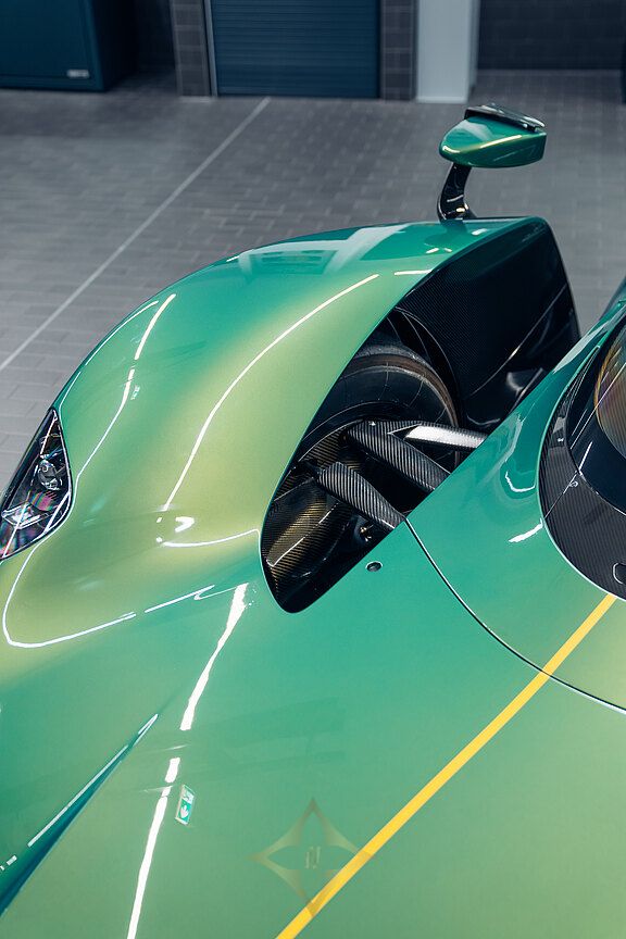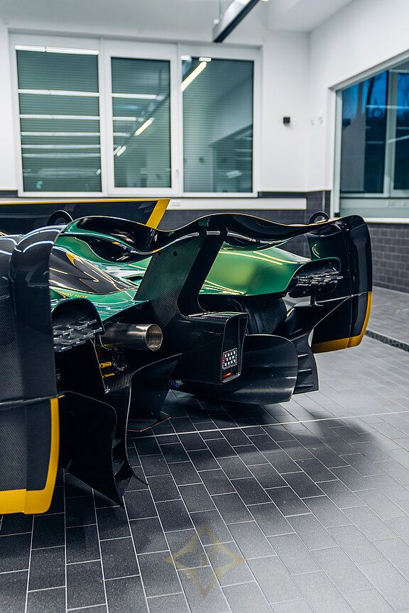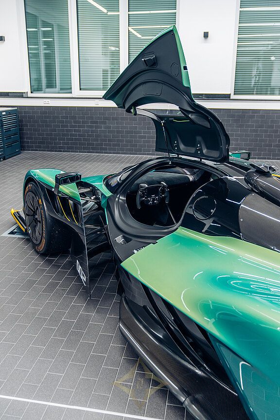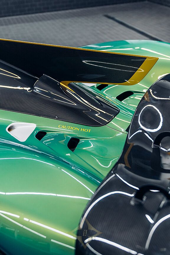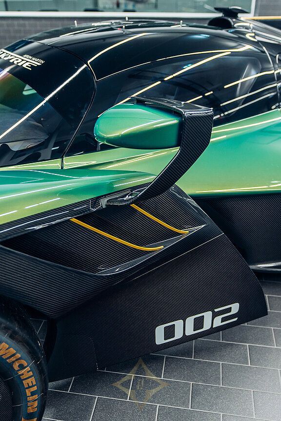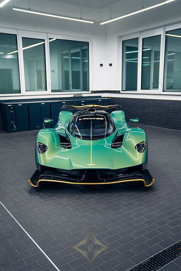 The long and challenging history of the Valkyrie's development includes a major chapter in motorsport. This not only refers to Adrian Newey as the most successful Formula 1 designer of all time and the mastermind behind the Valkyrie, but also Aston Martin's ambition to go down in the history books with an overall victory in the 24 Hours of Le Mans, as McLaren did in 1995 with the F1 GTR. This plan was shared with the public for the first time in Geneva in 2019 as the Valkyrie AMR Pro Concept. To achieve this goal, the already extreme road version of the Valkyrie was used as the basic concept and optimised so much for racing that every component of the finished AMR Pro was developed in-house, with the exception of the front headlights and the V12 engine.