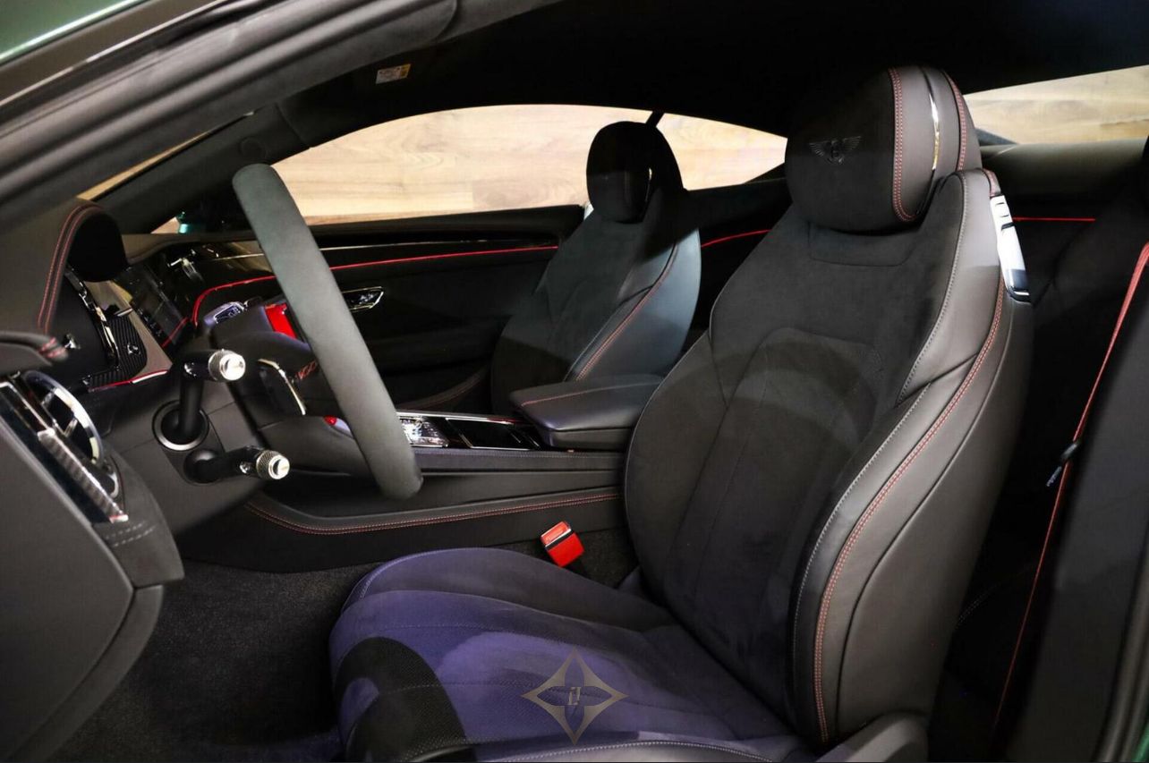 Furthermore, this Bentley features every conceivable option, such as: Carbon exterior parts, Leather/Alcantara Seats with contrast stitching, 22-inch alloy wheels, Seat heating/chair ventilation in the front, Climate control, Rear view camera, Front & rear parking sensors, Naim Surround Sound system, Full map navigation, Adaptive Cruise control, Rear view camera, Apple Carplay, Seat massage, Lane assist, three-part multimedia system (Bentley rotating screen), Air suspension, Piano paint and carbon finish Interior, Blind spot detection, Electrically adjustable seats with memory, Ambient lighting, Night vision assist, Head-up display, Steering wheel heater etc.