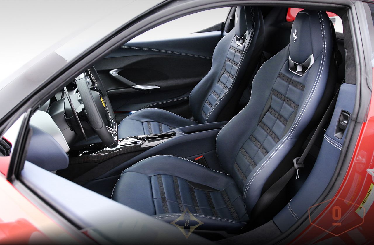 Seats: Daytona in blue leather and black Alcantara details with white seams, electrical adjustments and memory.