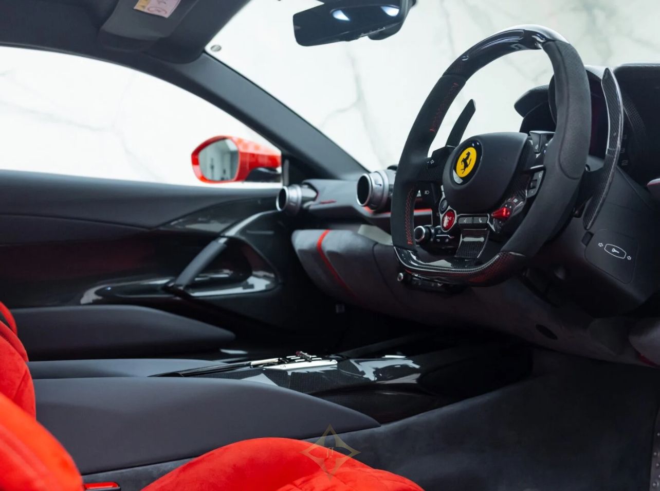 2023 FERRARI 812 COMPETIZIONE PRICE: £995,000 COLOUR: Rosso Cina INTERIOR: Charcoal & Rosso Alcantara & Leather YEAR: 2023 (23) MILEAGE: 2,548 Miles ENGINE: 6.5L V12 TRANSMISSION: 7-Speed DCT BODY STYLE: Coupe FUEL: Petrol KEY INFORMATION 1 of Just 999 Worldwide 1 Owner From New Finished in Rosso Cina 2-Layer Special Paint (£22,560) Desirably Equipped with Airbrushed Scuderia Shields (£8,160) & Livery (£8,640) Ferrari Manufacturer’s Warranty until June 2027 Ferrari 7 Year Servicing Plan until June 2030 Paint Protection Film (PPF) Applied to Whole Car UK Supplied OPTIONS 20-Inch Painted Forged Wheels Rosso Cina 2-Layer Special Paint Atelier Car Airbrushed Scuderia Shields Dreamline on Side of Front Spoiler in Carbon Fibre, Sill & Rear Diffuser (6mm Wide) in Argento Nurburgring Livery on Boot & Carbon Fibre Front Blade in Argento Nurburgring Carbon Fibre Rear Diffuser Carbon Fibre Front Air Vents Carbon Fibre Underdoor Cover Carbon Fibre Upper Part of Centre Console Carbon Fibre Dash Inserts Carbon Fibre Instrument Cover Carbon Fibre Inner Door Handle Carbon Fibre Parcel Shelf Adaptive Headlights with SBL Function Suspension Lifter Passenger Display JBL High Power Hi-Fi System Front & Rear Parking Cameras Racing Seat Lifter Apple CarPlay Heat Insulating Windscreen Kickplate with New Atelier Logo - 'Personalized with Ferrari' - in Argento Nurburgring with Horizontal Stripe in Rosso Cina Rosso Alcantara Full Seats Checked Racing Seats Charcoal Leather Upholstery Coloured Steering Wheel in Black with Red Thread Steering Wheel Grips in Nero Alcantara Inner Details in Rosso & Charcoal Alcantara Charcoal Alcantara Interior Carpet Dedication Plate in Silver Cavallino Stitched on Headrests in Charcoal Coloured Special Stitching in Charcoal on Rosso Seats, Rosso Thread on Charcoal Leather Black Rev Counter Coloured Mats with Logo Pirelli Colour Edition Tyres in Grigio Yellow Brake Calipers Paint Protection Film (PPF) Applied to Whole Car MODEL OVERVIEW The 812 Competizione is the finessed version of the 812 Superfast, representing the pinnacle of Ferrari's engineering and design. It comes with Ferrari's iconic naturally-aspirated V12, and may be the last Ferrari production car to get this engine. Producing 819bhp, it does 0-60mph in just 2.8 seconds. It also comes with Ferrari's latest technology, such as the infotainment system. The Competizione has received some advanced aerodynamic features, including a redesigned front end, rear diffuser and active aerodynamics. The Competizione creates 30% more front downforce than the Superfast. Also with plenty of carbon fibre throughout the car, weight is reduced, enhancing the performance even more. The striking and aggressive looks go hand in hand with the insane power and performance, making it the perfect example to possibly bid farewell to the naturally-aspirated V12 that we all know and love. Overall, the 812 Competizione is the ultimate enthusiastic's and collector's car. ——— Romans International Brighton Road, Banstead, Surrey, SM7 1AT, UK Phone: +441737 428 863 Email: sales@romansinternational.com