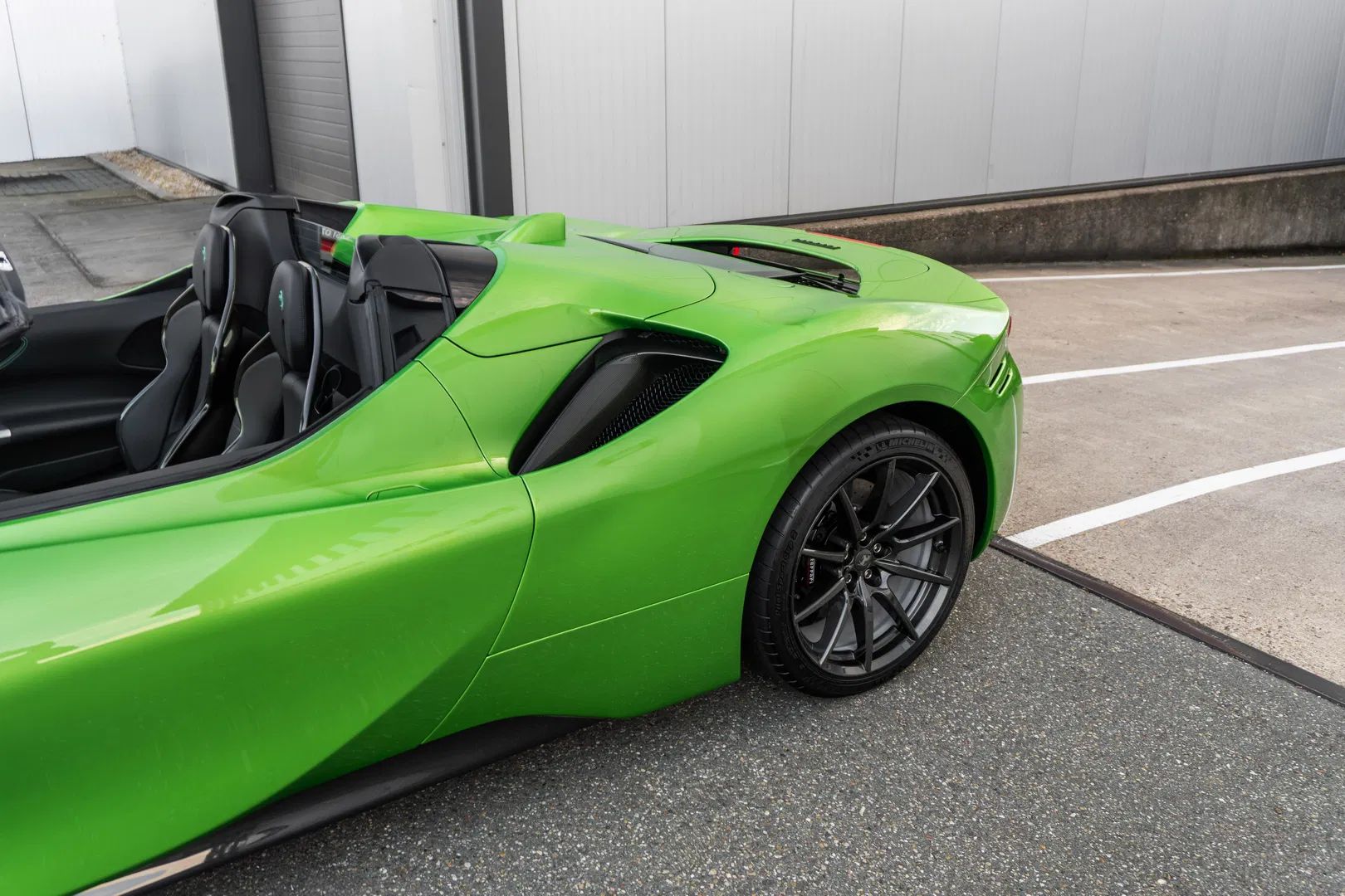 The ‘Atelier’ example we offer is a particularly special sight, finished in the €19,500 optional ‘Verde Kers’ metallic, a beautiful two-layer apple-green color with rich metallic flakes. The retractable hardtop is finished in ‘Nero DS’, perfectly complementing the black interior.