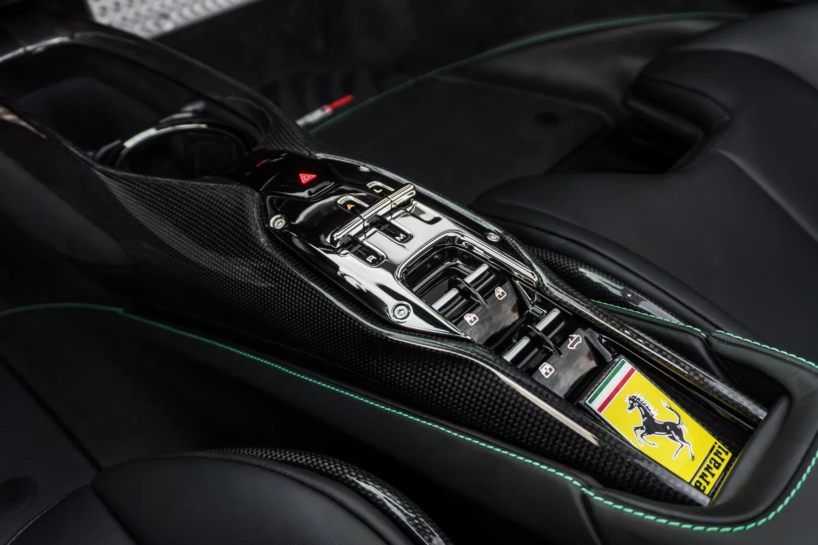 It’s lavishly equipped with the right options, including a lift system, JBL high-end audio system, Surround View, titanium wheel bolts, adaptive headlights, Apple CarPlay, black exhaust tips, Ferrari lettering and prancing horse in satin black, and loaded with carbon fibre options, including the seats, LED steering wheel, wheel caps, diffuser, side air splitters, front splitter, wheels, engine bay, door sills, side skirts, dashboard elements, instrument cluster cover, ‘Scuderia Ferrari’ shields on the front fenders, and even the key finished in carbon fiber!