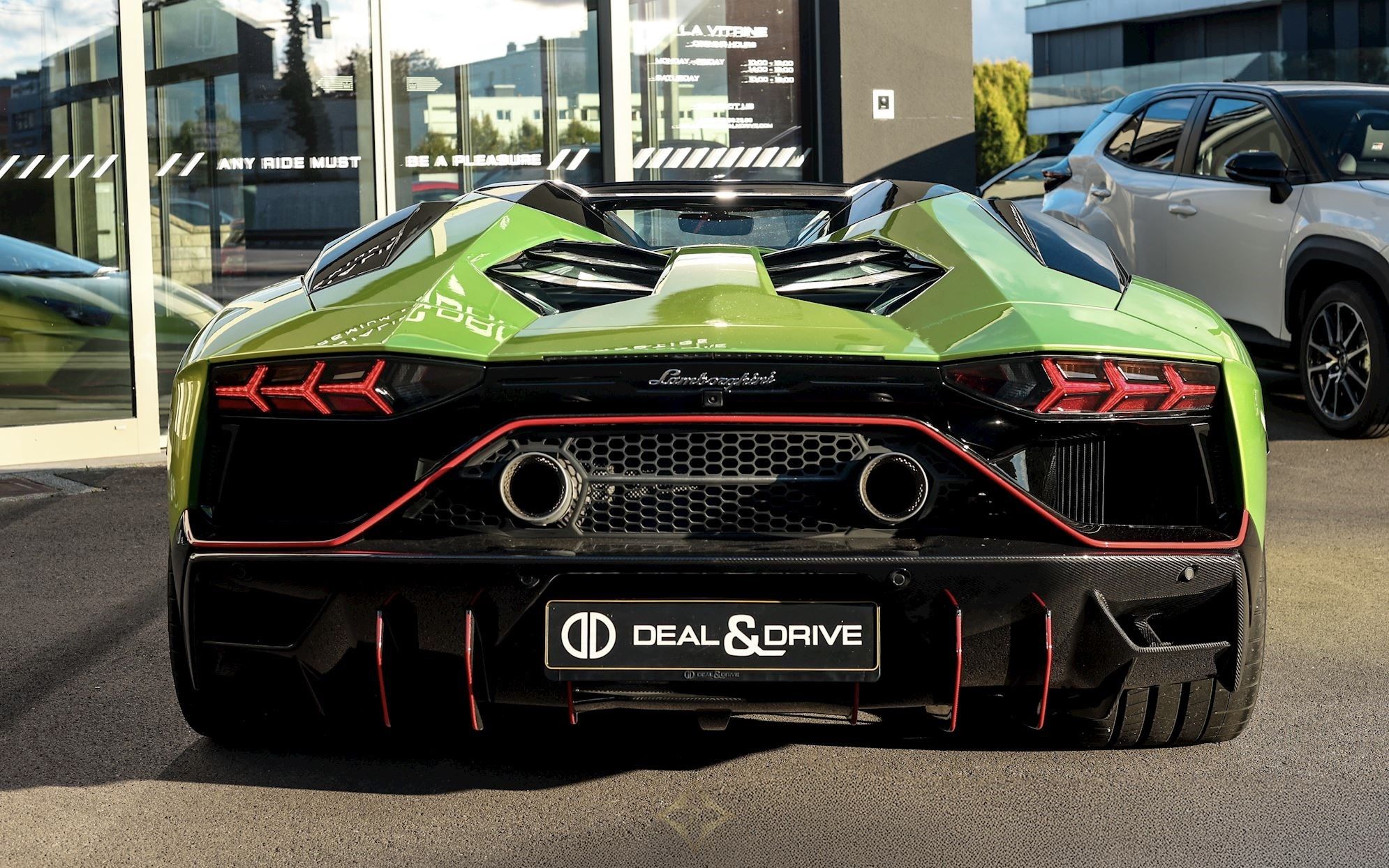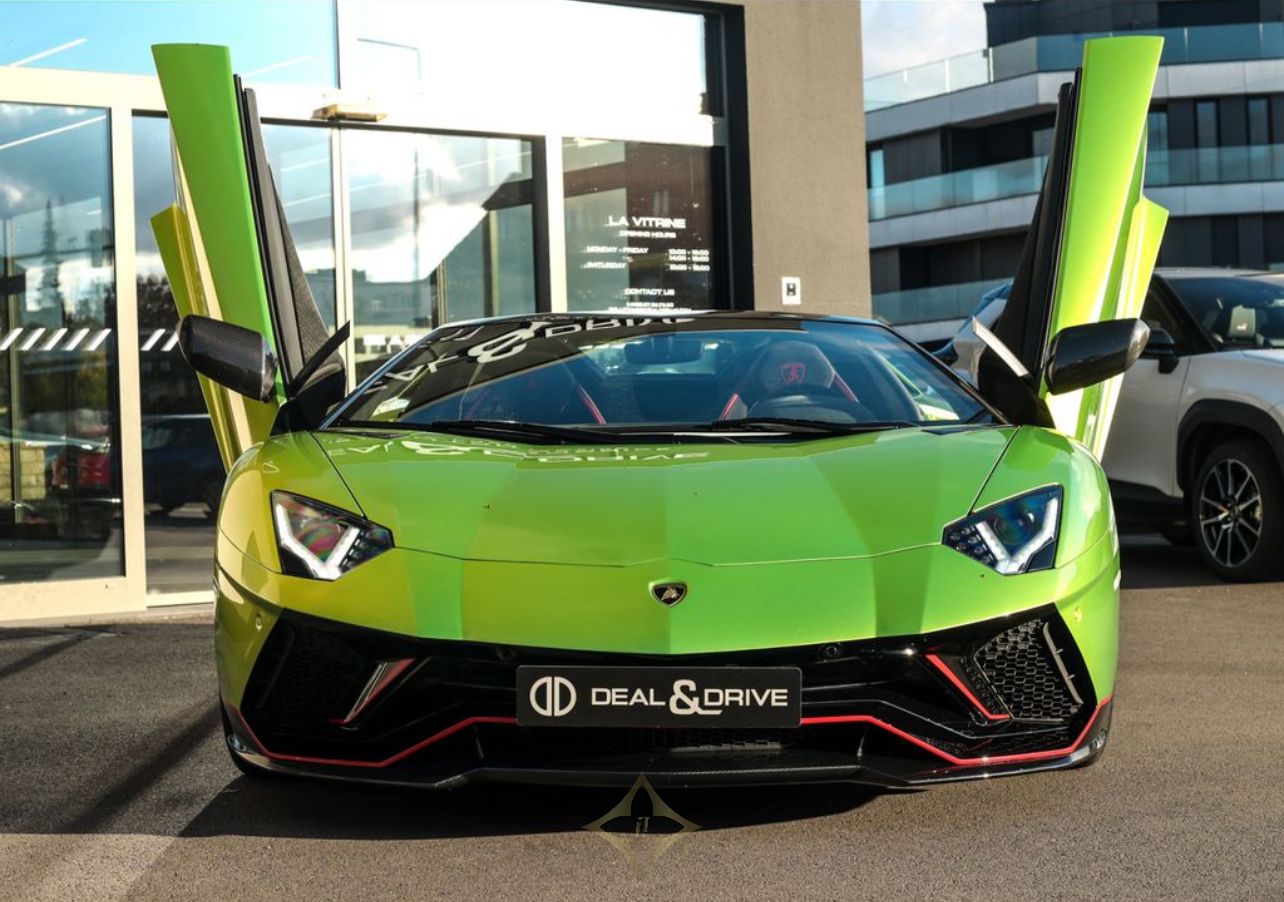 2023 LAMBORGHINI AVENTADOR ULTIMAE ROADSTER LP780-4 6.5 V12 - 1 OF 250 - VERDE CITREA - FULL XPEL DETAILS Brand: LAMBORGHINI Model: AVENTADOR ULTIMAE ROADSTER LP780-46.5 V12 - 1 OF 250 - VERDE CITREA - FULL XPEL First registration: 06/2023 Mileage: 5 870 km Fuel type: Petrol Engine power: 780 hp Transmission: Automatic Color: Green PRICE: 689 999,00 €VAT included Tax deductible DESCRIPTION LAMBORGHINI AVENTADOR ULTIMAE ROADSTER LP780-4 6.5 V12 - 1 OF 250 The LAMBORGHINI AVENTADOR ULTIMAE ROADSTER represents the ultimate tribute to the naturally aspirated non-hybrid V12. With its 781 CH from a legendary 6.5-litre engine, it embodies the quintessence of the Italian supercar: wild, radical and timeless. Only 250 units worldwide were produced, making this model a true collector. This configuration stands out with a rare paint, a full Carbon kit inside & out and full-body XPEL protection, ensuring long-term brilliance and preservation. It combines the radical nature of the SVJ with the elegance of the S, for the perfect balance between extreme performance and refinement. Vehicle visible by appointment only - Please contact our sales team – Registration: 12/06/2023 Mileage: 5.870 KM 17% VAT refundable POWER 780 CH / 574 kW Transmission: Automatic Fuel: Petrol Displacement: 6.498 cm³ Condition: Mint condition Accident Free Warranty: 12-month including Lamborghini up to 11/06/2026 Full Lamborghini service history Previous owner(s): First owner Exterior colour: 7054 Verde Citrea Interior: W01 – Ultimae interior finish in full Alcantara Accessories: Full-body XPEL protection film CO2 combined 442 g/km OPTIONAL EQUIPMENT KN4 – Full Carbon kit, gloss finish exterior & interior Side skirts in Carbon Rear diffuser in Carbon Interior inserts in Carbon Door sills in Carbon, illuminated FL2 – C-Pillar air intakes and front splitter in Carbon gloss 6FI – Exterior mirrors in Carbon 1PB – Central wheel locking bolts in Red 2MR – Front axle lift system with Red suspensions 4B5 – Exterior details in Rosso 50B – Full Accent Livery 5GL – Removable hard top in Carbon gloss 7X9 – Front & rear parking sensors with reversing camera 9VK – Lamborghini Sensonum sound system CR9 – Forged LEIRION wheels 20"/21" in Gloss Black H2M – Pirelli P-Zero tyres CZ – Seatbelts in Rosso Alala PCR – Brake calipers in Red RM-1 – Contrast colour Rosso Alala RM-3 – Interior stitching in Rosso Alala VF-2 – Interior base colour Verde Faunus STANDARD EQUIPMENT Black floor mats Steering wheel in leather & Alcantara, multifunction, with Red 12 o’clock marker and Red stitching Voice command system Automatic headlights Heated seats Automatic climate control Driving mode selector Electric seats Electric lumbar support ——— DEAL & DRIVE 105 Route d'Arlon, L-8009 Strassen, Luxembourg Phone: +352 27 39 73 90 WhatsApp: +352 691 911 599 Email: solutions@dealndrive.com