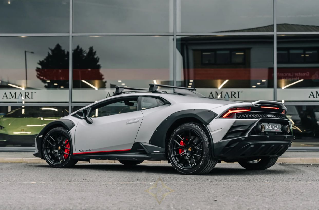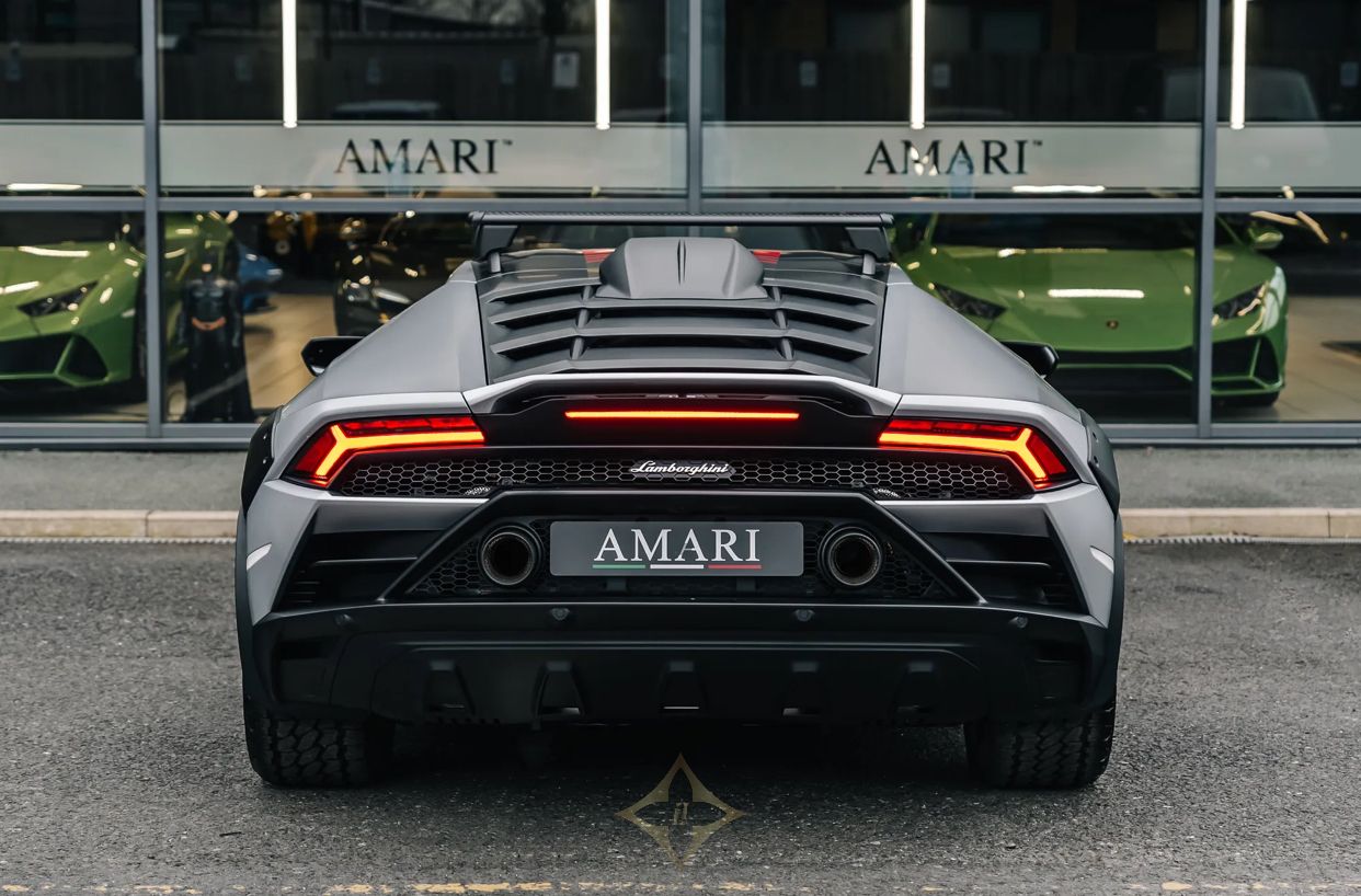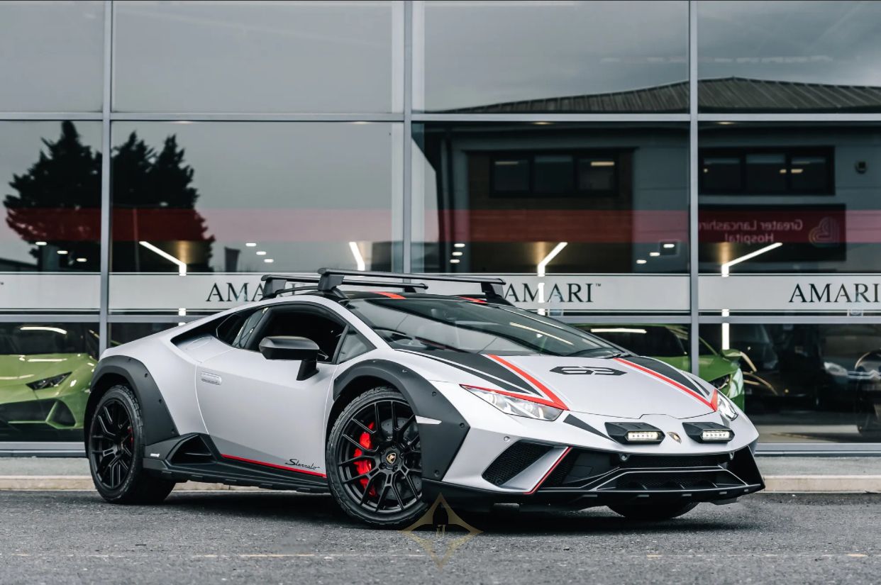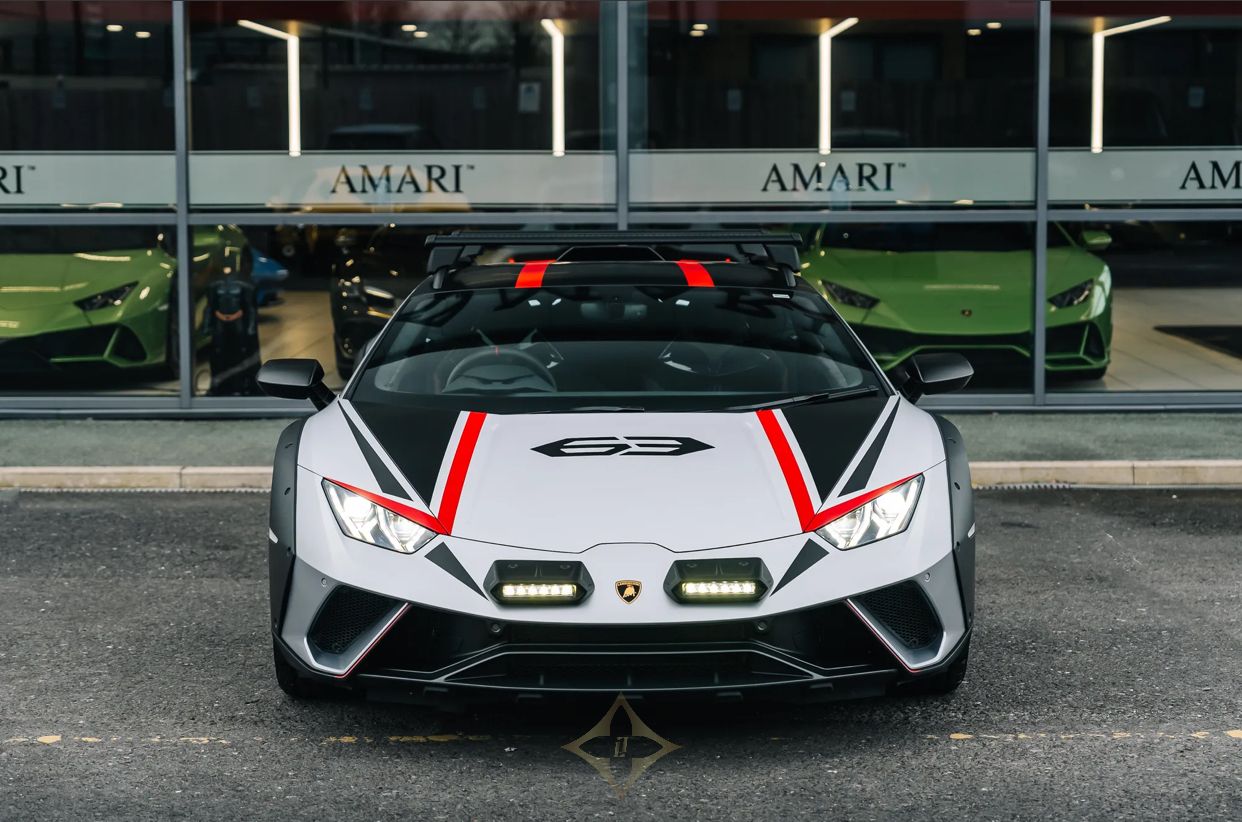 A unique touch to this Lamborghini's identity is the captivating Sterrato Livery adorning the Front Bonnet and Roof, in Rosso Livery Colour. The presence of the 63 Logo on the Front Bonnet adds an exclusive touch, showcasing the car's bespoke nature. Completing the ensemble, the Tailpipes in Matt Black contribute to the overall sporty and refined allure of this exceptional Lamborghini Huracan Sterrato. As a masterpiece from Amari Supercars, it stands as a testament to both luxury and performance in the world of supercars.
