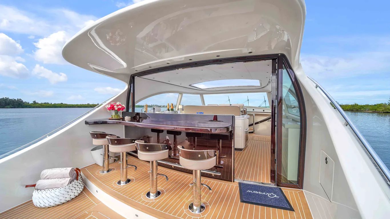 Forward of the aft deck is the bar with stools for three.