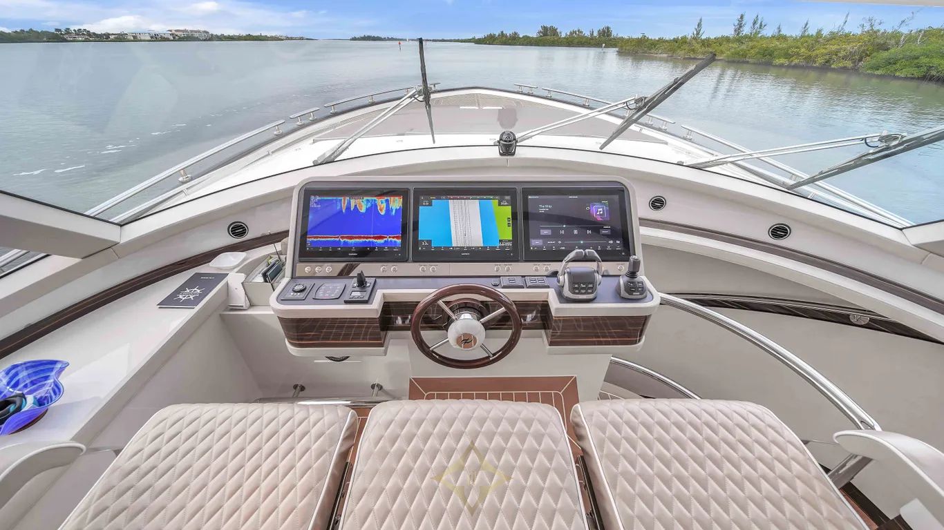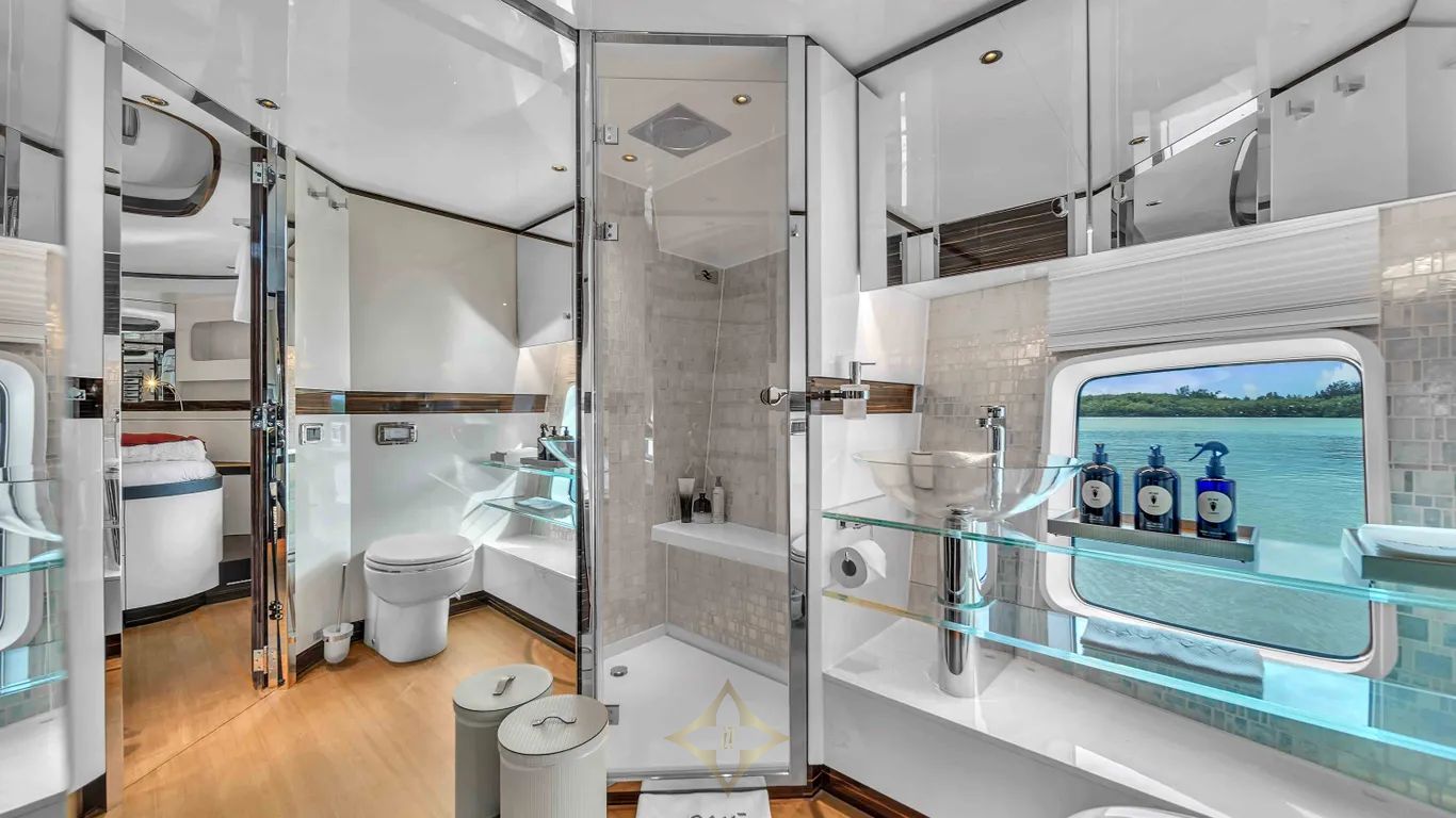 Three staterooms with queen berths and sizable ensuite heads will satisfy anyone. One of the queen berths splits to make two singles. The main deck is split in to three entertaining areas: