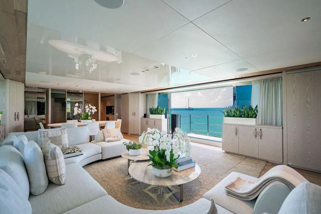 Her interior is a bespoke creation by acclaimed yacht designer Marty Lowe, featuring exclusive décor elements and a palette that evokes luxury and tranquility. From rich textures to custom furnishings, THE WOLF stands out as one-of-a-kind SD118, tailored to offer an immersive experience of elevated living at sea.