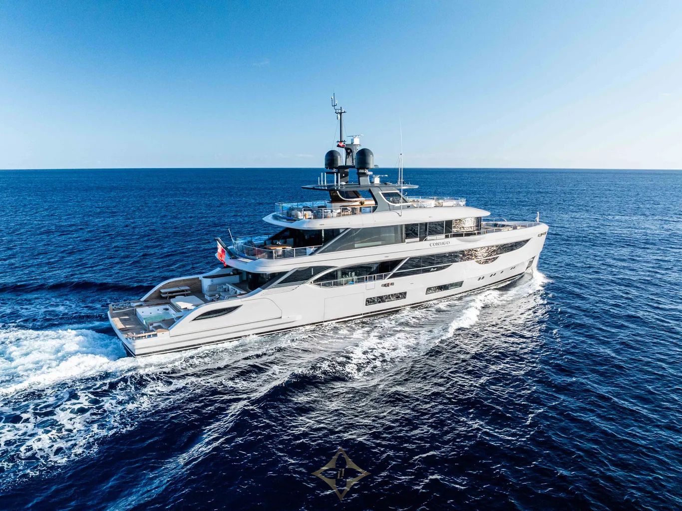 Powered by twin 1400hp MAN V12 engines, CONTIGO has a top speed of 17 knots and has a range of 4,000nm at cruising speed of 14.5 knots. She also offers maximum comfort and stability thanks to her CMC zero-speed stabilizers.