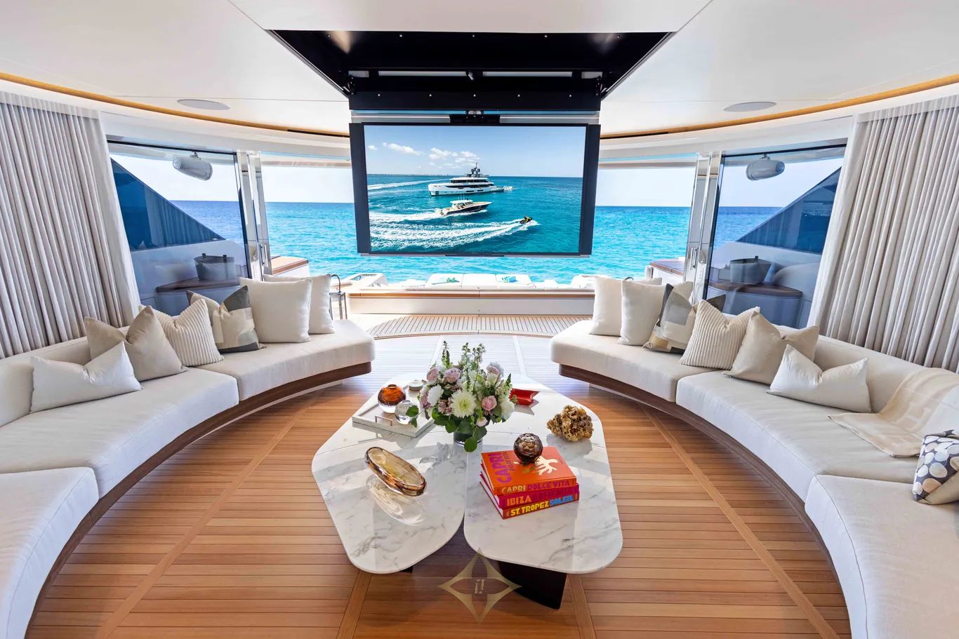 Built by Benetti and launched in June 2024 as hull no. 16 of the Italian yard’s popular Oasis 40m series, CONTIGO is in pristine condition. With exterior design by RWD and interior design by Bonetti/Kozerski Architecture DPC, CONTIGO has a clean, spa-like aesthetic of white furnishings and varnished teak floorboards.