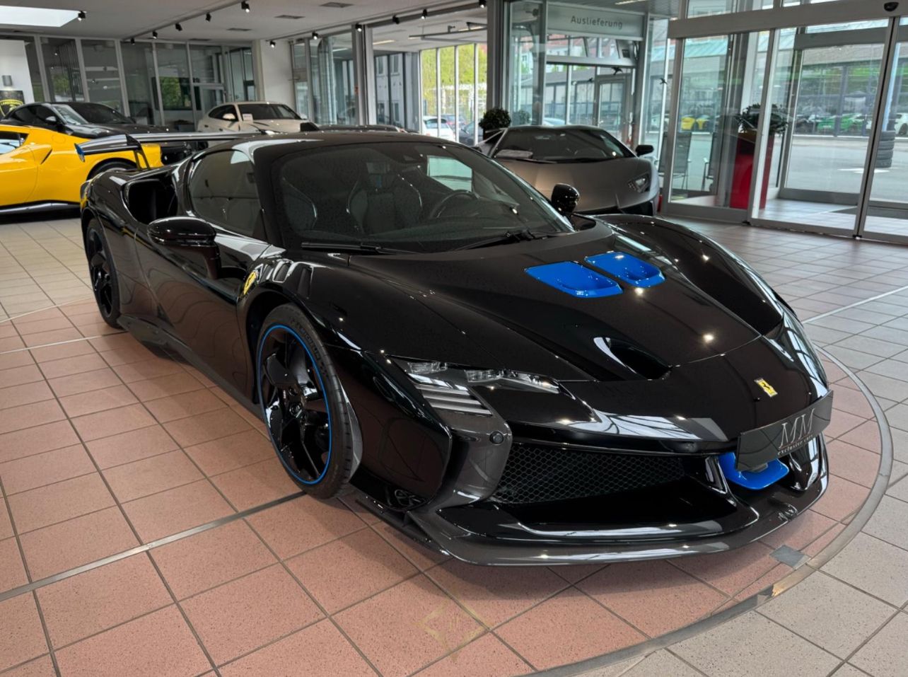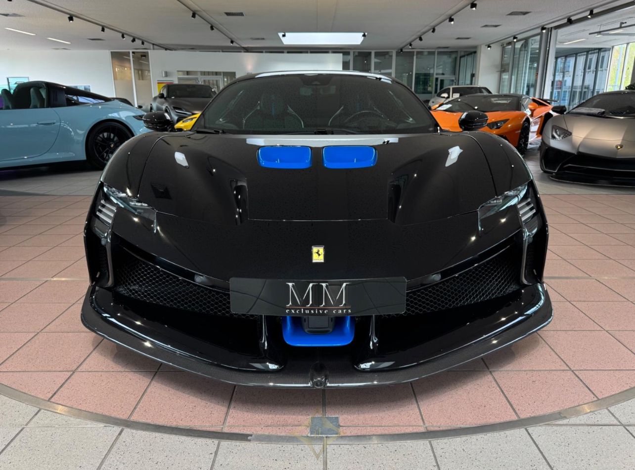 Ferrari SF90 XX PRICE: €1,495,000 (€1,256,303 Net 19,00% VAT) Mileage: 560 km Power: 758 kW (1,031 hp) Fuel: Petrol First Registration: 07/2024 Number of Vehicle Owners: 1 Transmission: Automatic DETAILS Vehicle condition: Used vehicle, Accident-free Category: Sports Car/Coupe Model range: F173 HFC Trim line: XX Vehicle Number: 7923 Origin: German edition Mileage: 560 km Power: 758 kW (1,031 hp) Drive type: Internal combustion engine Fuel: Petrol Energy consumption (comb.): -- 1/100km Number of Seats: 2 Transmission: Automatic Emission Class: Euro6 Emissions Sticker: 4 (Green) First Registration: 07/2024 Number of Vehicle Owners: 1 HU: 07/2027 Climatisation: Automatic air conditioning Parking sensors: Camera Airbags: Front and Side Airbags Colour (Manufacturer): NERO DS Colour: Black Interior Design: Alcantara, Black Date of last service (date): 07/2025 Last service (mileage): 550 km AFS1 Adaptives Frontlight System ALDT Inner Details in Coloured Alcantara ALRC Rear Trim Panels in Carbon CEIS Carbon Fiber Side Air Splitter CEL2 Engine Covers in Carbon Fiber CERB Carbon Fiber rear Boot Trim CESP Rear Spoiler in Carbon CEXD Rear Diffusor in Carbon Fiber CEXS Carbon Fiber Underdoor Cover CRKY Key Carbon CFWC Carbon Fiber wheels Cups CIAD Carbon Fiber Dashbord Air Vent CIIP Carbon Fiber Instrument Cover CITZ Upper Part of Center Console in Carbon CIZB Carbon Fiber Front Luggage Compartment Area CIDL Interieur LIvery CRPS Inner Sill Trim and wheelhouse in Carbon Fiber ELEV Frontlift EMPH Cavallino stiched on Headrest EPHX Special tread EXAB Black Tailpipe FCWS Carbon Fiber Front spoiler FLMA Coloured Flor Mats with Logo HBMB Matt Black Rear Cavallino HOLK. Homelink HWCO My Ferrari Connect LMS1 Single Color Livery on Steering wheel LOGO Scuderia Embleme LTRS Racing Seats in leather MIR3 Electrochromer Rear View Mirror PAC3 Front and Rear Parking Cameras PAR2 Front and Rear Parkung Sensors PIB8 Passenger Compartment inserts Alcantara PNT7 Racing Stripe RSCH Carbon Fiber Racing Seats RSES. Racing seat Lifter RWCF Rear screen in Carbon fiber SMRT. Smart interface SNDH Hifi Soundsystem SPEC Custom Specification --- 1. HAND DEUTSCHE AUSLIEFERUNG HERSTELLERGARANTIE ——— MM Automobile GmbH Exclusive Cars Head office: