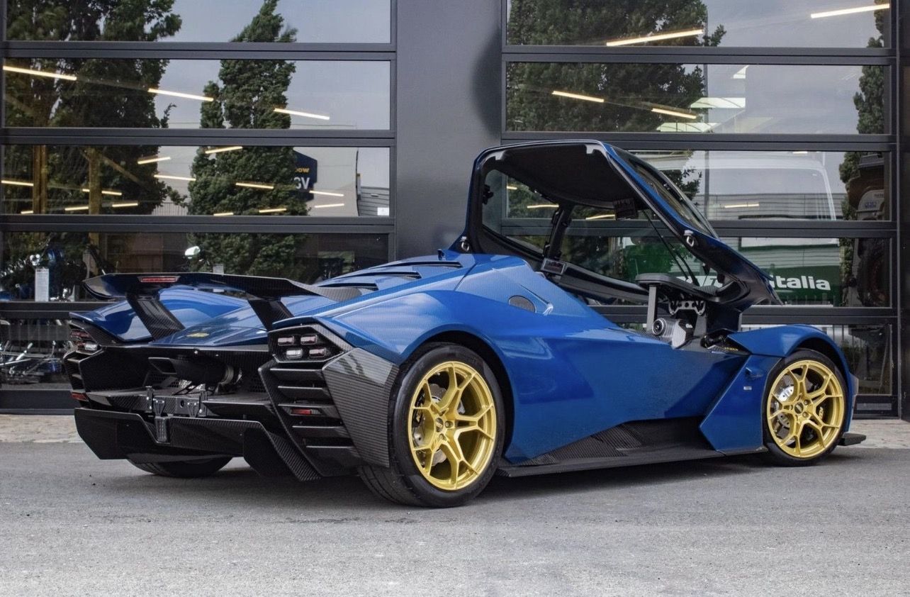 One of the most spectacular features of this car is the way you get in: the cockpit opens electrically like a jet fighter canopy. No doors, but a full dome that opens forward – a unique and impressive detail that immediately shows that this car has nothing to do with conventional sports cars.