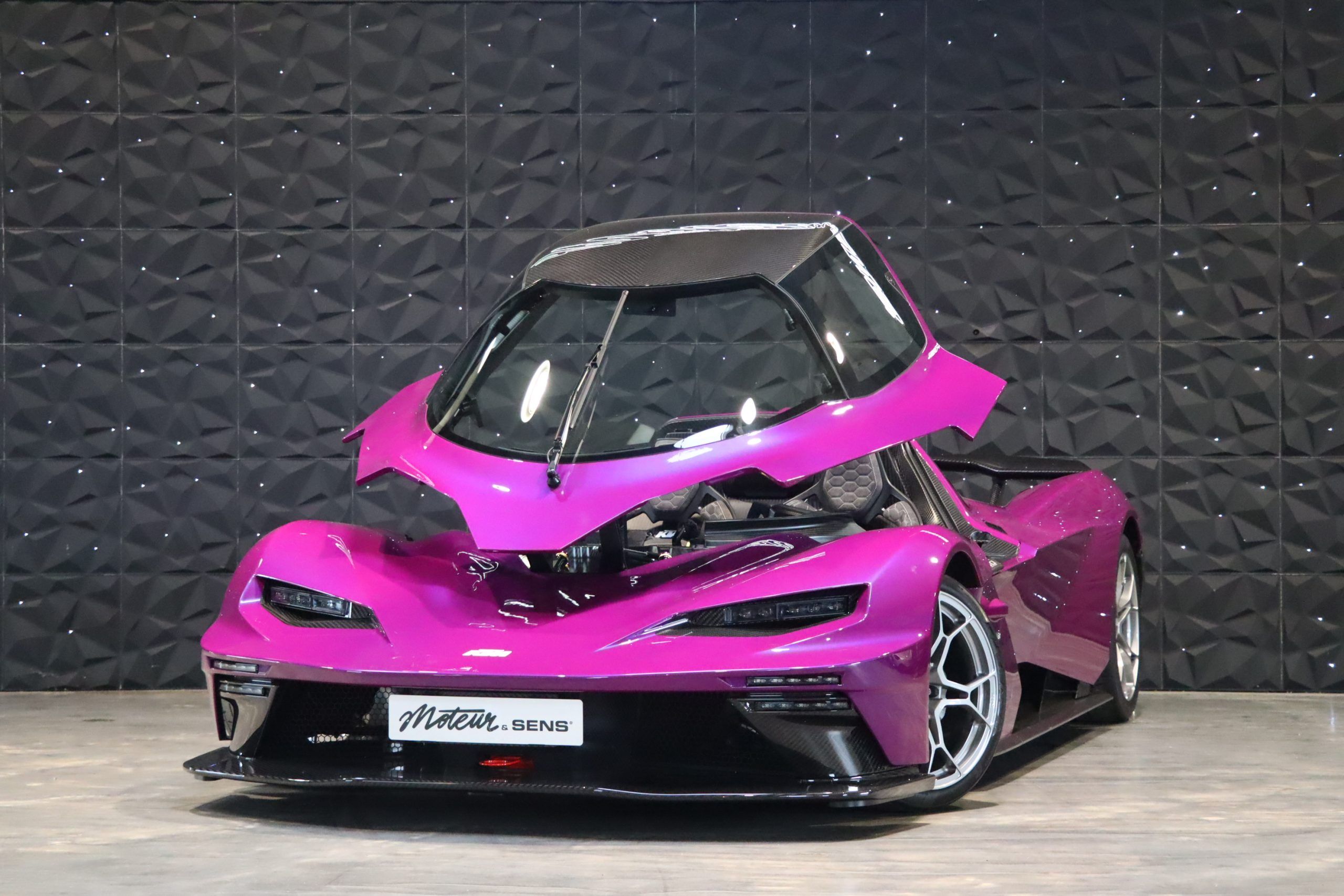 It is with these arguments that the Moteur & Sens teams embarked on this adventure, by carefully configuring this X-Bow GT-XR, one of the first 100 units produced (100 Limited Edition). From the order book to the visit to the production plant, every detail of this car has been designed to offer a unique experience, until the moment it is offered for sale. This version is distinguished in particular by its Individual "Viola Mithras" shade, a rare and spectacular glossy finish, and by more than €66,000 in options, including many carbon pieces, intended to refine performance. In the end, this car once registered in France (Malus CO2 already paid) returned to almost €500,000.