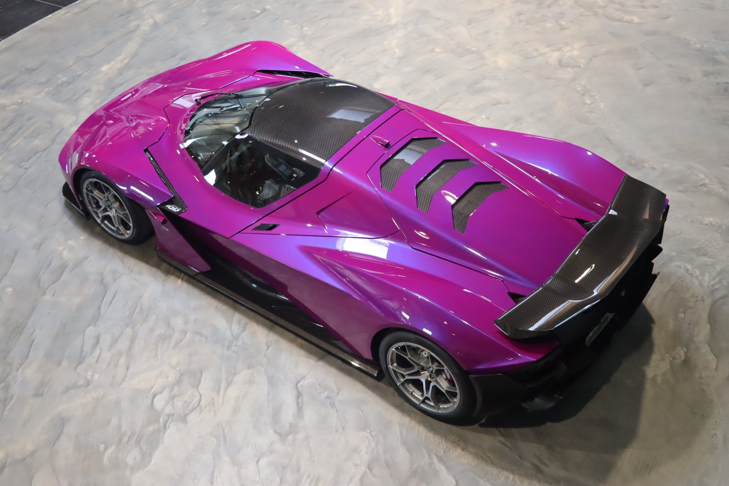 But this spectacular design is not at the expense of performance: 89 kg carbon monocoque, total weight limited to 1,130 kg, and above all, the legendary 2.5L Audi 5-cylinder turbo, increased to 500 hp, associated with a DSG box and a limited slip differential on the rear wheels.