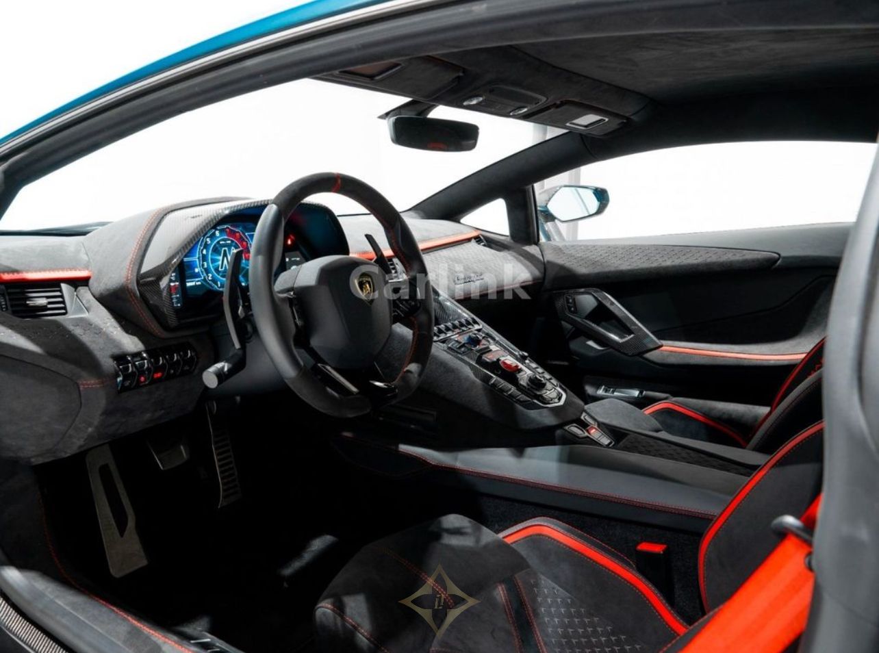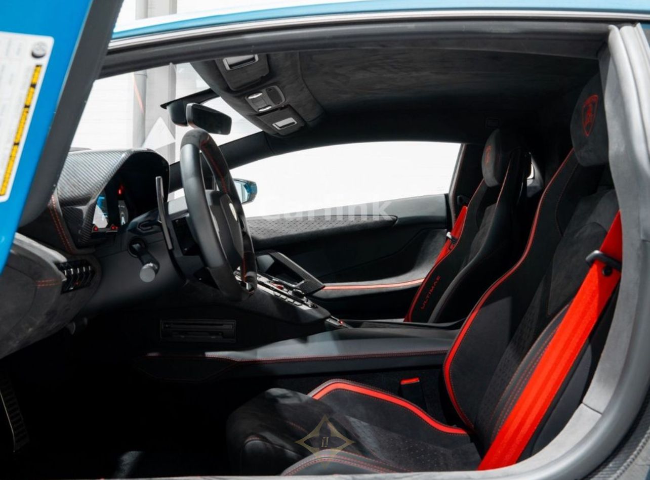 2024 LAMBORGHINI (ref nr. 39772) AVENTADOR LP 780-4 ULTIMAE PRICE: €660,000 (€554,622 - Net 19,00% VAT) HIGHLIGHTS NEW AVENTADOR ULTIMAE No Registration 70km VEHICLE INFORMATION Ref nr.: 39772 Model: Lamborghini Aventador Fuel type: Petrol Exterior: Blu Aegir Interior: Bi-Colore Alcantara BlackRed HP/KW: 780/574 1st Registration: 07-2024 KM's: 70 km CO2: 442 gr - G FULL SPECIFICATION NEW AVENTADOR ULTIMAE The highest-performing standard-production naturally aspirated V12 engine in Lamborghini History Stitching for Q-citura pattern - a. Nero Ade (Black) Livery with stripe Rosso (Red) Carbon fiber engine bay Leirion Forged 20 21 shiny black Black central lock Dual stage driver airbag and adaptive passenger airbag Exterior mirrors electrically adjustableheatable and foldable Mirror Housings in shiny carbon Exterior details in matt blackbody col. e. Red springs with lifting system T-engine cover in carbon fiber Wheel cap with Lamborghini logo Pillar and windscreen frame in Alcantara Anti-theft system Full interior carbon fiber package Interior details in shiny black Tailpipes in dark grey matt Embroidered Lamborghini shield on headrest Park Assist (Sensors with Rear View Camera) Carpets and floor mats - Nero CosmusNero Ade Electronically controlled rear spoiler with manual activation Rear Window Glass Rear axle with RR axle steering function Roof lining in Alcantara Bi-xenon headlights for LHD X-frame in shiny carbon Interior details in shiny black Visibility and light package Multifunction steering wheel in Alcantara with smooth leather inserts Lamborghini Sensonum Transparent Engine Bonnet Navigation system C-pillar intakes and front bonnet air outlets - Carbon Shiny Engine details in Carbon Shiny Red Calipers Digital Audio Broadcasting (DAB) Backing color - Grigio Cronus (Grey) Electrical seats adjustment Heated seats Fuel Filler Cap in Bronzo Ultimae Interior Trim Rear bumper black shiny carbon shiny ——— Carlink Piet Heinkade 177, 1019HC Amsterdam, The Netherlands Email: info@carlinkxl.com Phone: +31 880 911 911 Carlink Outlet Business Park Stein 107 C-D, 6181MA Elsloo, The Netherlands Email: info@carlinkxl.com Phone: +31 880 911 977