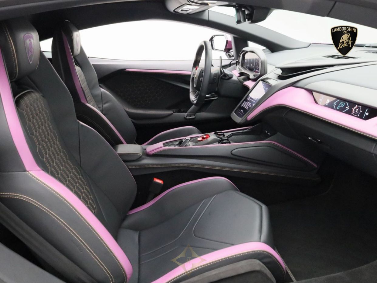 Embroidered Lamborghini logo on the headrest in viola 30th