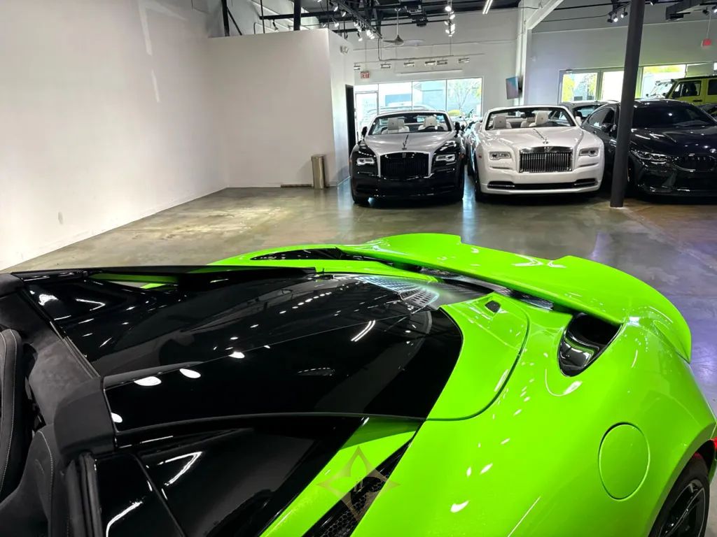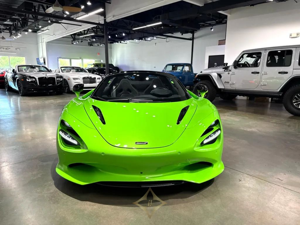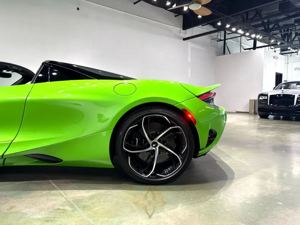 ABSOLUTELY STUNNING 2024 McLAREN 750S SPIDER FINISHED IN THE STUNNING MCLAREN MANTIS GREEN. THIS 413K MSRP SPIDER BUILD COMES WITH HE 3 YEAR/ UNLIMITED MILEAGE WARRANTY AS WELL AS 3 YEARS OF REGULAR SCHEDULED MAINTENANCE INCLUDED. HEAVILY EQUIPPED WITH VORTEX - 5 TWIN SPOKE WHEELS ($5800), VEHICLE LIFT, 360 DEGREE PARK ASSIST ($4000), 750S PERFORMANCE INTERIOR ($9400) , SOUND COMFORT WINDSCREEN ($1750), CF BC FRONT FENDER & LOUVRES ($8750), HEADLIGHT SURROUND ($1850), BLACK PACK ($3950), ELECTROCHROMIC ROOF ($9100), EXTERIOR ELITE PAINT - MANTIS GREEN ($5900), BOWERS & WILKINS AUDIO SYSTEM 12 SPEAKER ($5400), BLACK DIAMOND CUT FINISH ON WHEELS ($2500), ACTIVE REAR SPOILER IN MANTIS GREEN, SPORTS EXHAUST, TONNEAU - GLOSS BLACK, AND MUCH MORE