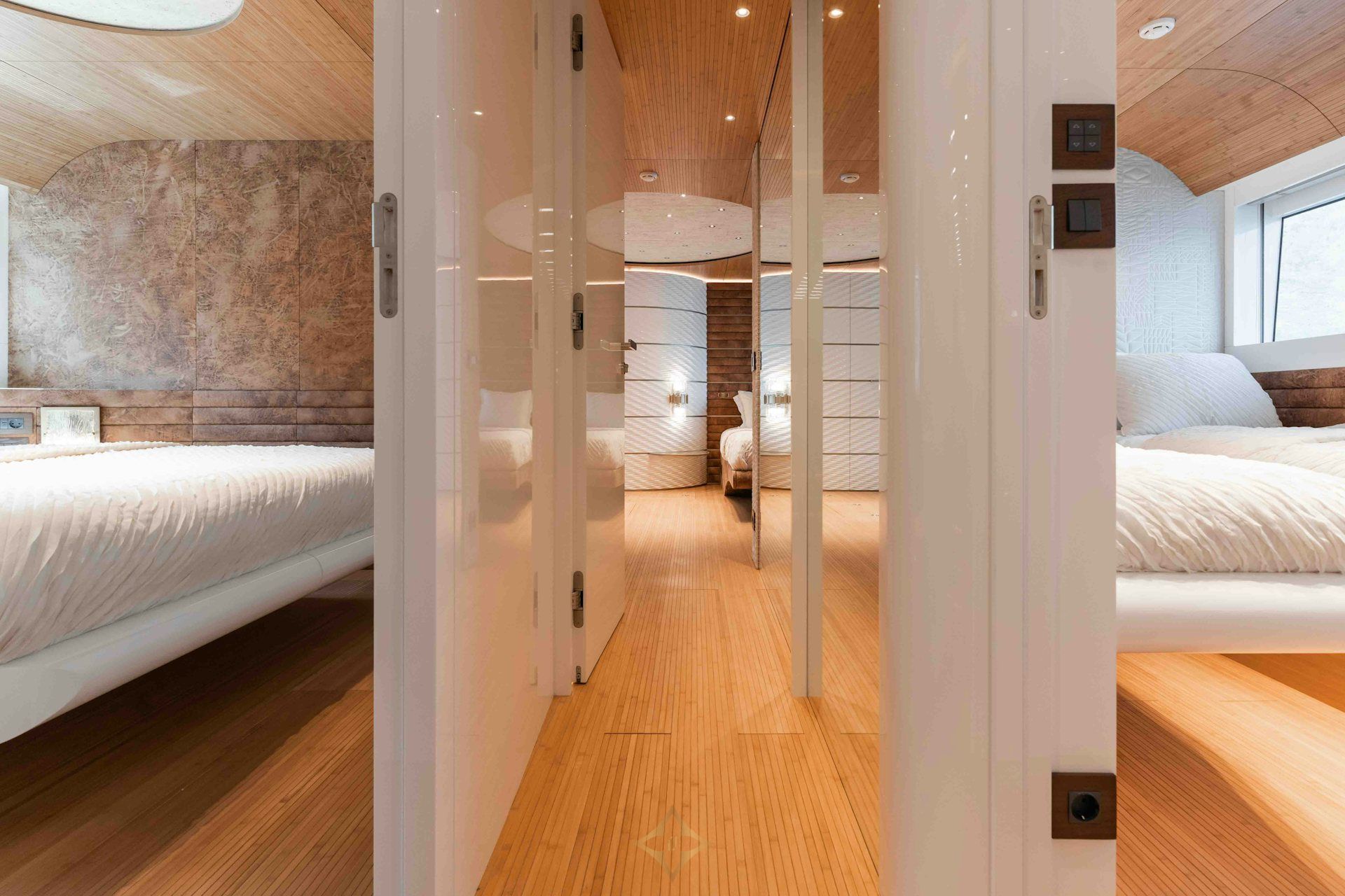 The Sarp XSR 85 #NB202 is a vessel that offers a unique blend of cutting-edge design and advanced technology. Her impressive features make her a true masterpiece in the world of yachting. At the core of the XSR 85's excellence is her hull design, which was crafted by Van Oossanen Naval Architects in Holland. The patented 'Fast Displacement Hull Form' (FDHF) sets a new standard in efficiency, allowing the yacht to perform optimally across a wide range of speeds. Unlike traditional hull designs that excel only within a limited speed interval, the FDHF offers superior performance and comfort, even in challenging sea conditions. Compared to hard chine vessels, the FDHF exhibits improved sea-keeping behavior, enhanced maneuverability and reduced sensitivity to weight increases.