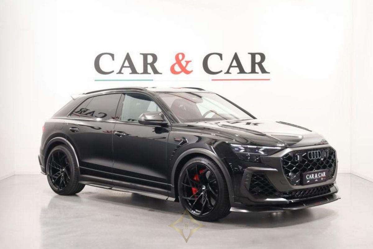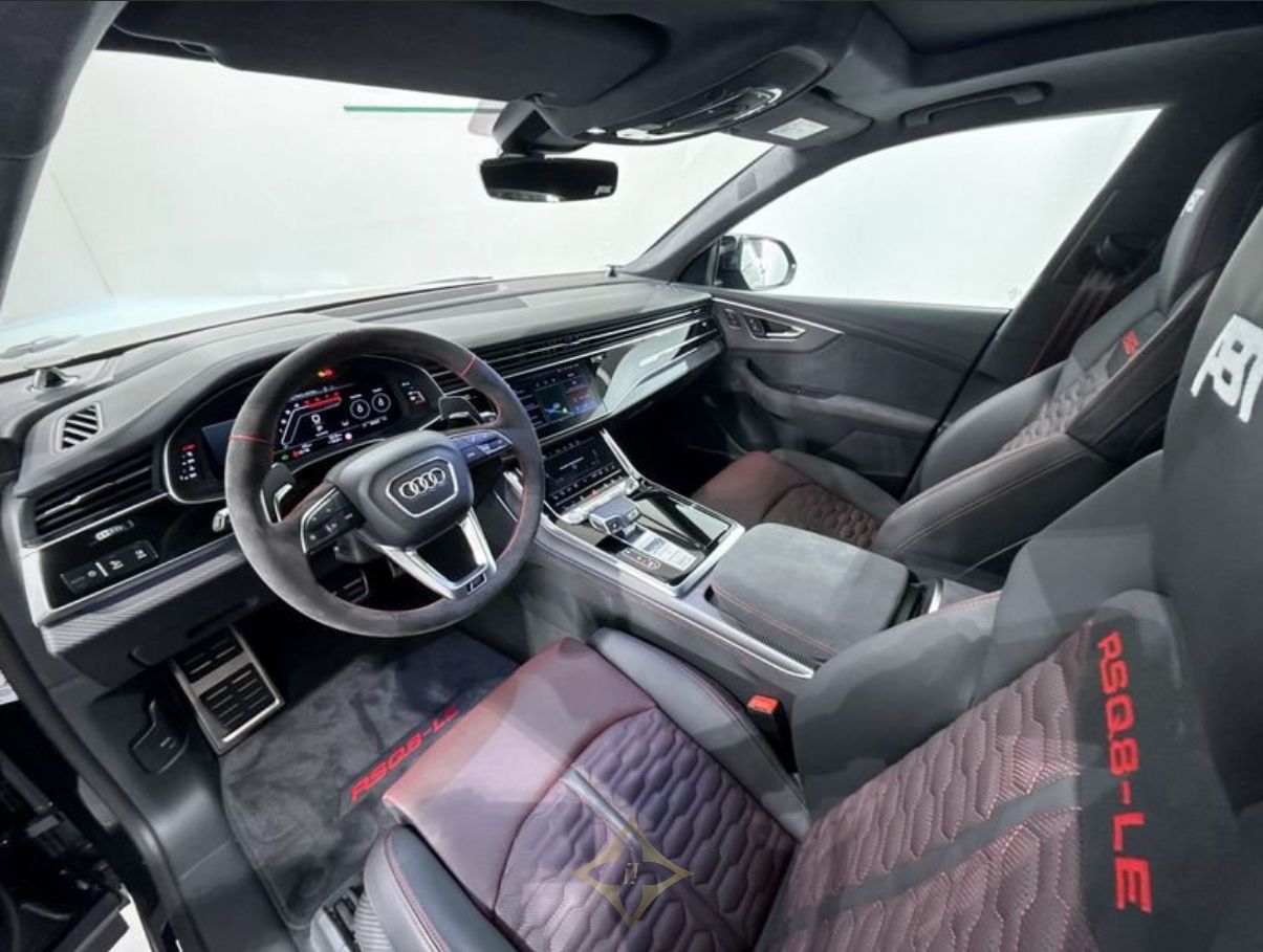 Audi Q8 1 of 125 RSQ8-LE ABT Performance quattro tiptronic Cash price: € 285,000 VAT included Condition: NEW Fuel type: Hybrid Gear Type: Automatic Traction type: Permanent 4WD Miles: 10 Km Power: 559 kW (760 HP) Exterior Color: Nero Mythos Metallizzato Description Car & Car presents 1 of 125 Audi RSQ8-LE ABT Performance Quattro Tiptronic Exclusive official car ready for immediate delivery Design: Exterior color: Mythos Black Metallic Internal color: Black leather Exclusive Equipment: Audi connect key Audi music rear interface Audi phone box Audi Premium Care 5 years up to 100,000 km Black Dinamica microfiber cabin sky Phone Box compensator Massage function for the front seats Electrically removable towbar Head up display RS sports exhaust system Brake system with ceramic carbon discs and red painted brake calipers Decorative inserts in matte twill carbon Black look with black logos Black roof handrails Night vision Assist plus package with Remote Park Assist plus Red RS plus design package Wireless heated acoustic insulated glass windshield OLED rear projectors with proximity light Additional ventilation heating with remote control Heating of the front and rear side seats Servo closing for doors Advanced Bang & Olufsen 3D sound system Garage remote control Electric sunshades Panoramic glass roof Speed limited to 305 km/h Tinted glass KIT ABT RSQ8-LE 1 OF 125: ABT HIGH PERFORMANCE external aesthetic kit in ultra light weight carbon OEM Quality in Superlight matt Carbon ABT Internal aesthetic kit RS Q8 LE with logos ABT RS Q8 LE ABT Supersport Alcantara steering wheel ABT Matte Carbon Grill ABT Gear balances and gear knob in matte Carbon ABT Interior linings seats and dashboard in matte carbon ABT Engine Kit Turbochargers and radiators ABT 2 x Control Units ABT V Max open min 760 HP max 980 Nm ABT Complete wheels RS Q8 LEGACY EDITION with TPMS and tires 295 35 ZR 23 ABT Exhaust system High Performance light weight with 4 105 mm terminals ABT Adjustable trim with stabilizers ABT Kit Whole logo LEGACY EDITION 1 OF 125 ABT Lighting Kit Full car price = 350,300.00 EUR incl. VAT 22% ——— CAR & CAR S.L.R SP35, Località Stolfina, km 108, 20058 Zibido San Giacomo MI, Italy Phone: +39 02 9055218 WhatsApp: +39 333 497 1128 Email: info@carecar.it