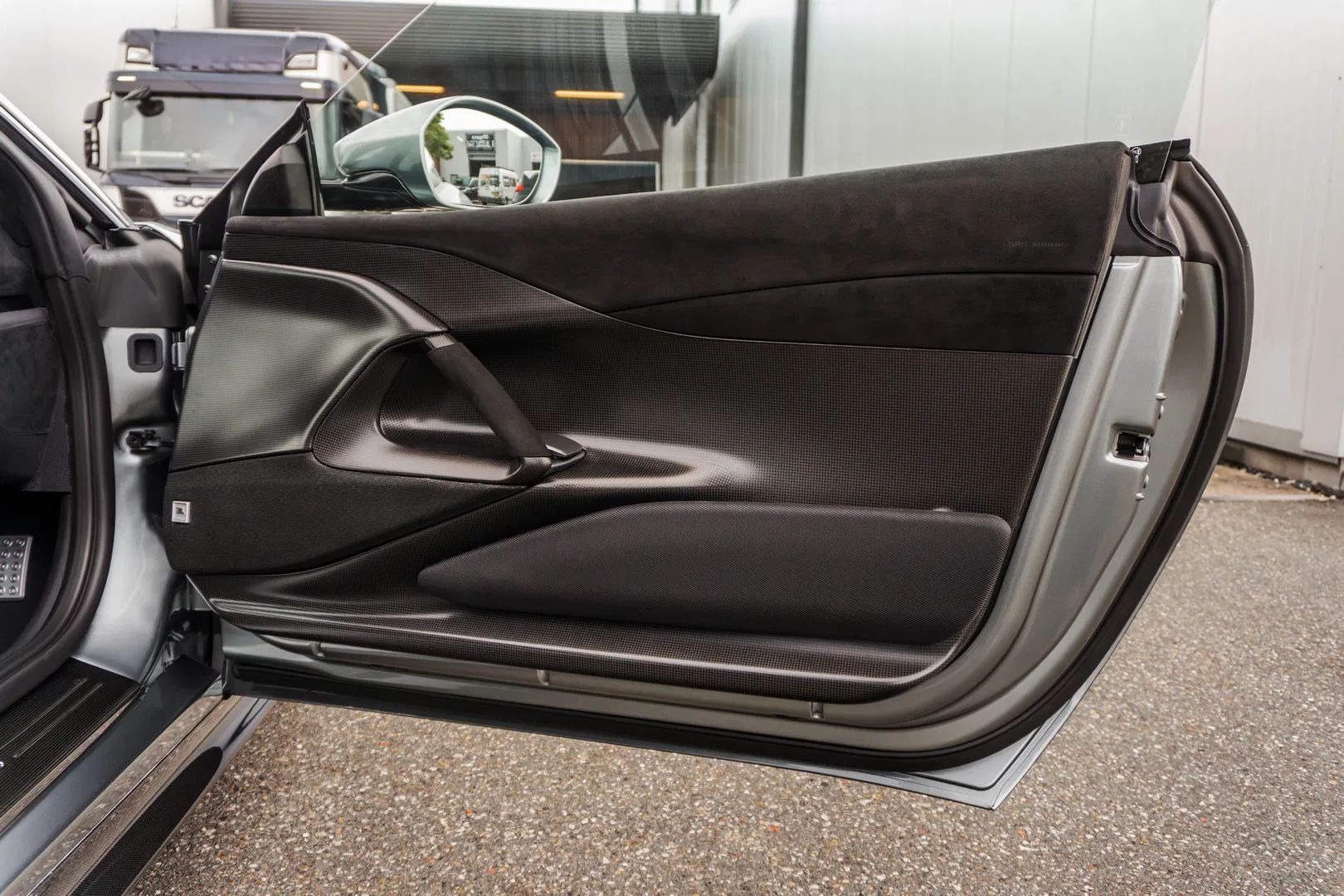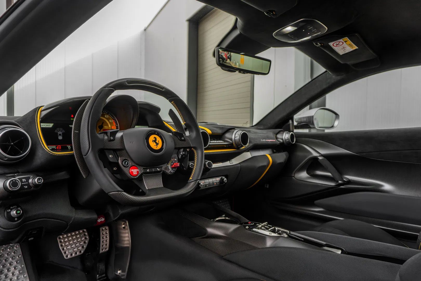 The example we offer is finished in the beautiful 'Grigio Competizione' with a 'Giallo Fly' and 'Nero DS' livery. Essentially the 'launch spec' with which the 812 Competizione was first shown to the general public. It's a gray paint with a light blue tint, with which the lines of the 812 Competizione come magnificently into their own.