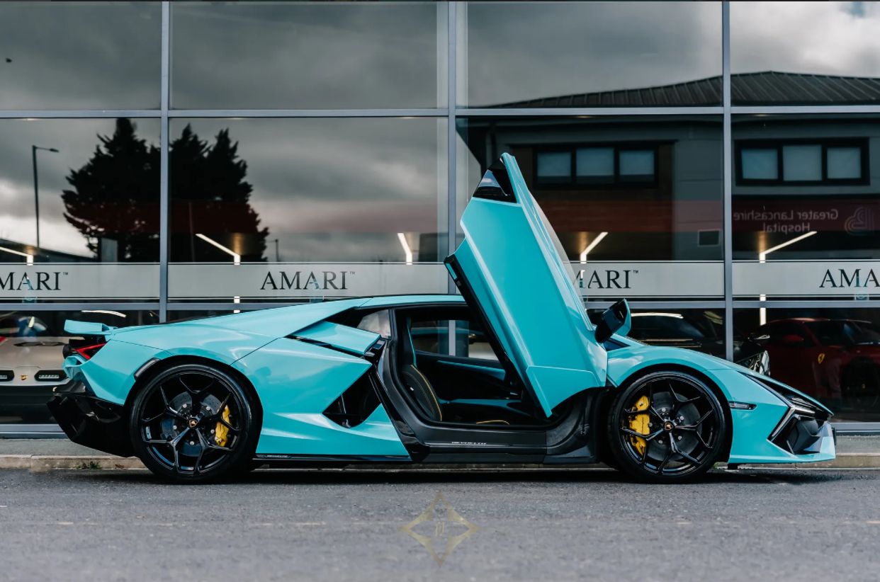 2025 LAMBORGHINI REVUELTO FOR SALE PRICE: £549,995 Overview - Registered March 2025 / 25 - £83,000+ Options List - Brand New / Delivery Mileage This 2025 Lamborghini Revuelto, finished in Blu Symi, is an outstanding example of Lamborghini’s first plug-in hybrid V12 supercar. With just 50 miles, it features over £83,000 in optional extras, including Sonus Faber Premium Sound System, Ad Personam sports seats, Steering Wheel Carbon Package, and 21"/22" forged wheels. It also comes with Lamborghini’s 5-Year Warranty. The Revuelto is Lamborghini’s first plug-in hybrid V12, delivering an astonishing 1,001bhp via an advanced all-wheel-drive system. Combining lightweight aerodynamics, cutting-edge hybrid tech, and a reimagined cockpit, it sets a new benchmark for raging bull performance. Specification Exterior in Ad Personam Special Request - Blu Symi Interior in Nero and Blu Hide Ad Personam Shiny Upper Black Livery Ad Personam Sports Seats Ad Personam Door Panels Ad Personam Central Armrest Ad Personam Lower Dashboard Ad Personam Tunnel and Console Style Package High Gloss Black Sonus Faber Premium Sound System Steering Wheel Carbon Package Leather - Revuelto 21" Front / 22" Rear Altanero Shiny Black Forged Alloy Wheel Ambient Light RGB Lights Embroidered Lamborghini Shield on Headrest Exhaust Tailpipes in Matt Black Floor Mats with Leather Piping and Double Stitching Full Assistant Package Full Electrically Adjustable and Heated Seats Giallo Carbon Ceramic Brake Calipers Headlamps Package Inverted Stitching Kickplates in Carbon Matt with Logo and Lighting Revuelto Lamborghini Rear Logo in Shiny Black Parking Pack Q-Citura on Roof & Door Panel - Sportivo Smartphone Interface and Connected Services Sportiva Trim - Ad Personam Surround Assistance Package Touch Passenger Display 5th Year Lamborghini Warranty This vehicle comes with the remaining balance of the 5 Years Lamborghini Warranty. We have the original Owners Pack containing the Owners Manual, and other reference material. To arrange a viewing, please contact our team on +44 (0) 1772 663 777. Viewing strictly by appointment. Specification Year: 2025 Reg Year: 25 Number of Owners: 1 Mileage: 85 Miles Exterior Colour: Blu Symi Interior Colour: Nero Hide Driver Position: RHD Engine: 6.5 Body Type: Coupe Transmission: Semi-Automatic ——— AMARI™ Supercars Address: Wyder Court, Millennium City Park, Preston, PR2 5BW, United Kingdom Email: sales@amarisupercars.com Phone: +44 (0)1772 663777