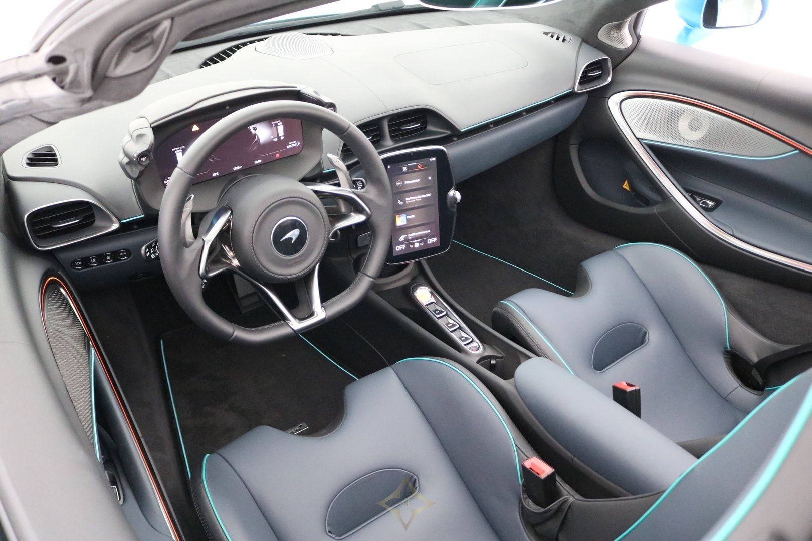 Floor mats: McLaren logo, Jet Black with teal details