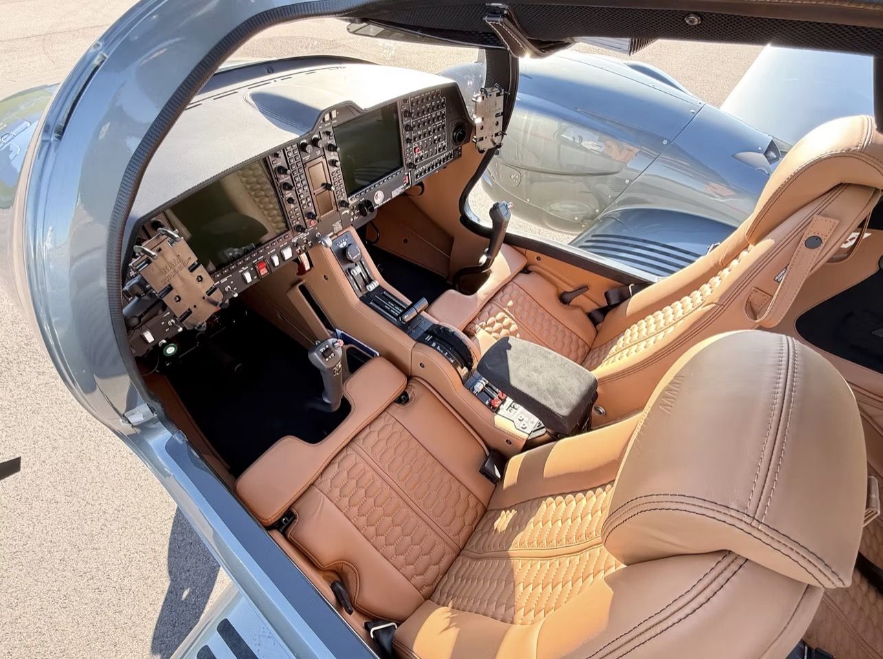 THE AESTHETIC: Finished in Anthracite, the exterior looks as if it were carved from liquid graphite, moving with quiet, controlled menace. Inside, the cabin, wrapped in premium bisque, feels deliberate. Wide. Airy. Intelligently designed. High-end materials and textures, thoughtfully curated. Seven real seats, not theoretical seats. The air conditioning hits like a walk-in freezer, and the built-in oxygen lets you stretch into the flight levels like a boss. The diesel hum fades into the background while the miles stack up. Whether it’s family, partners, or clients climbing aboard, this cabin delivers a travel experience closer to that of an entry-level turbine than a piston twin. Quiet. Refined. Composed.