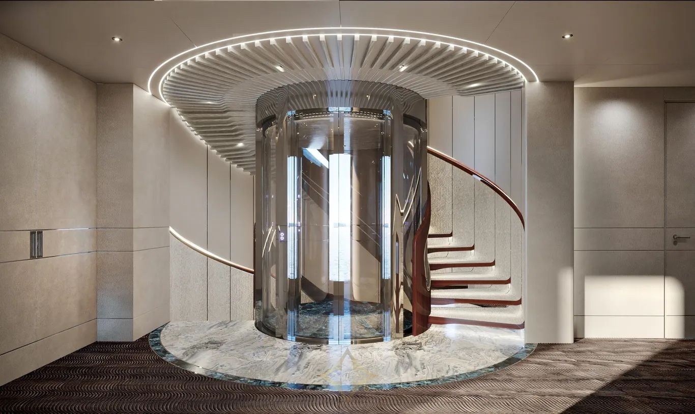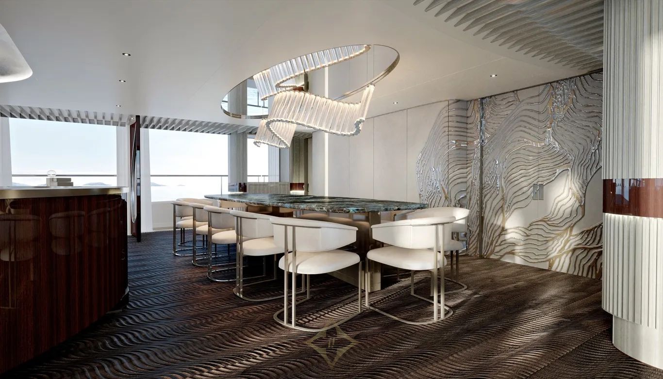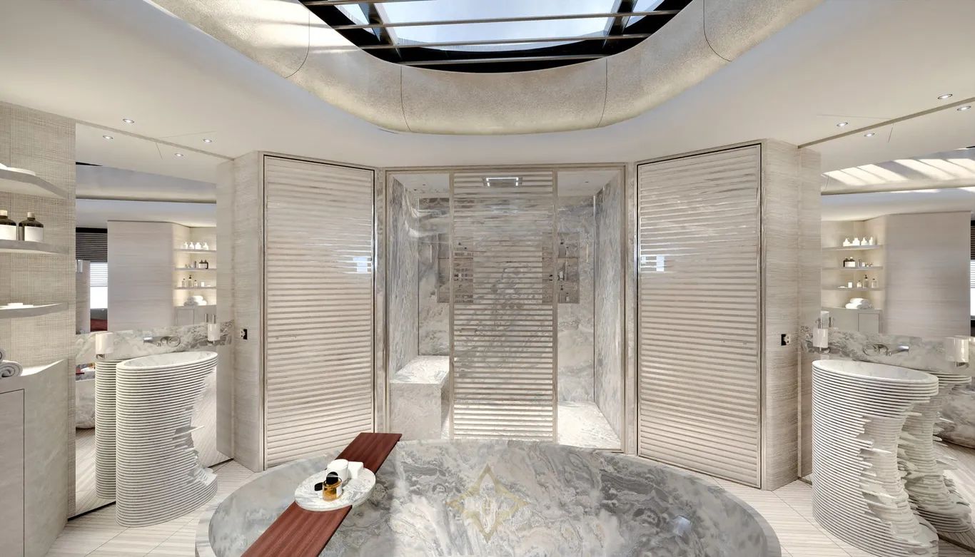 With flexible accommodation for 12-14 guests across six or seven double cabins served by an elevator to all decks, she is equally suited for family cruising or entertainment. Her advanced engineering ensures not only impressive range and efficiency but also smooth, stable passages thanks to her four zero-speed stabilisers.