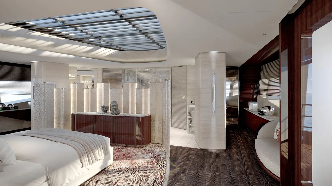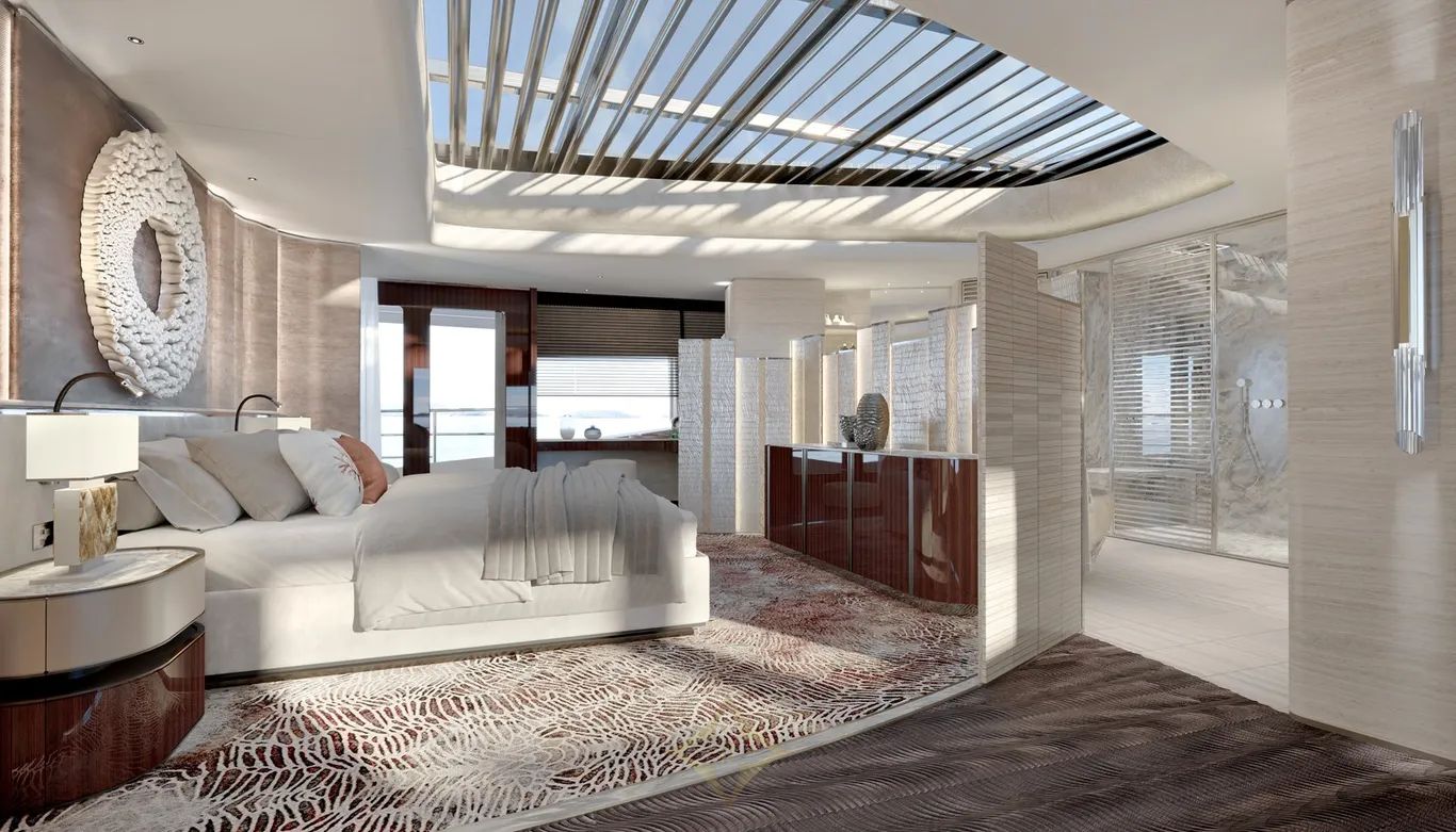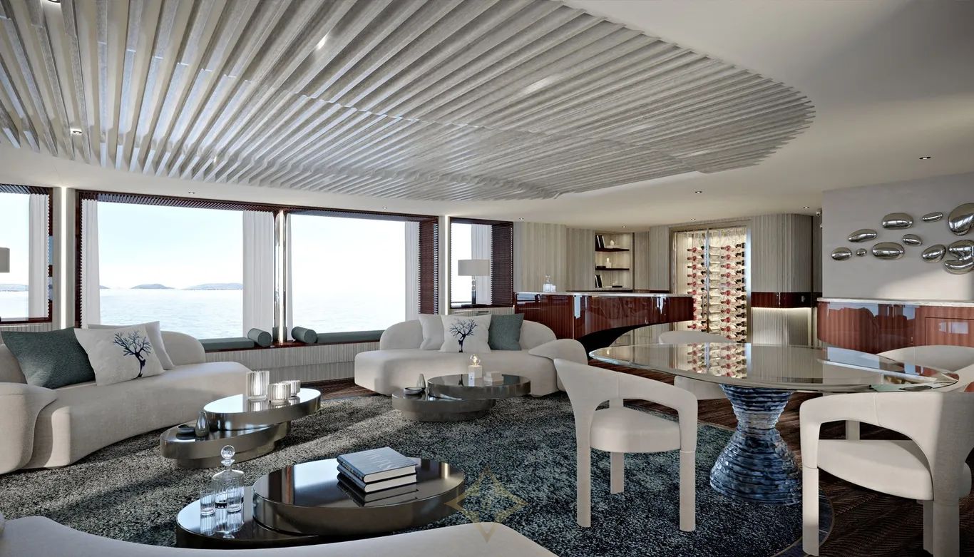With flexible accommodation for 12-14 guests across six or seven double cabins served by an elevator to all decks, she is equally suited for family cruising or entertainment. Her advanced engineering ensures not only impressive range and efficiency but also smooth, stable passages thanks to her four zero-speed stabilisers.