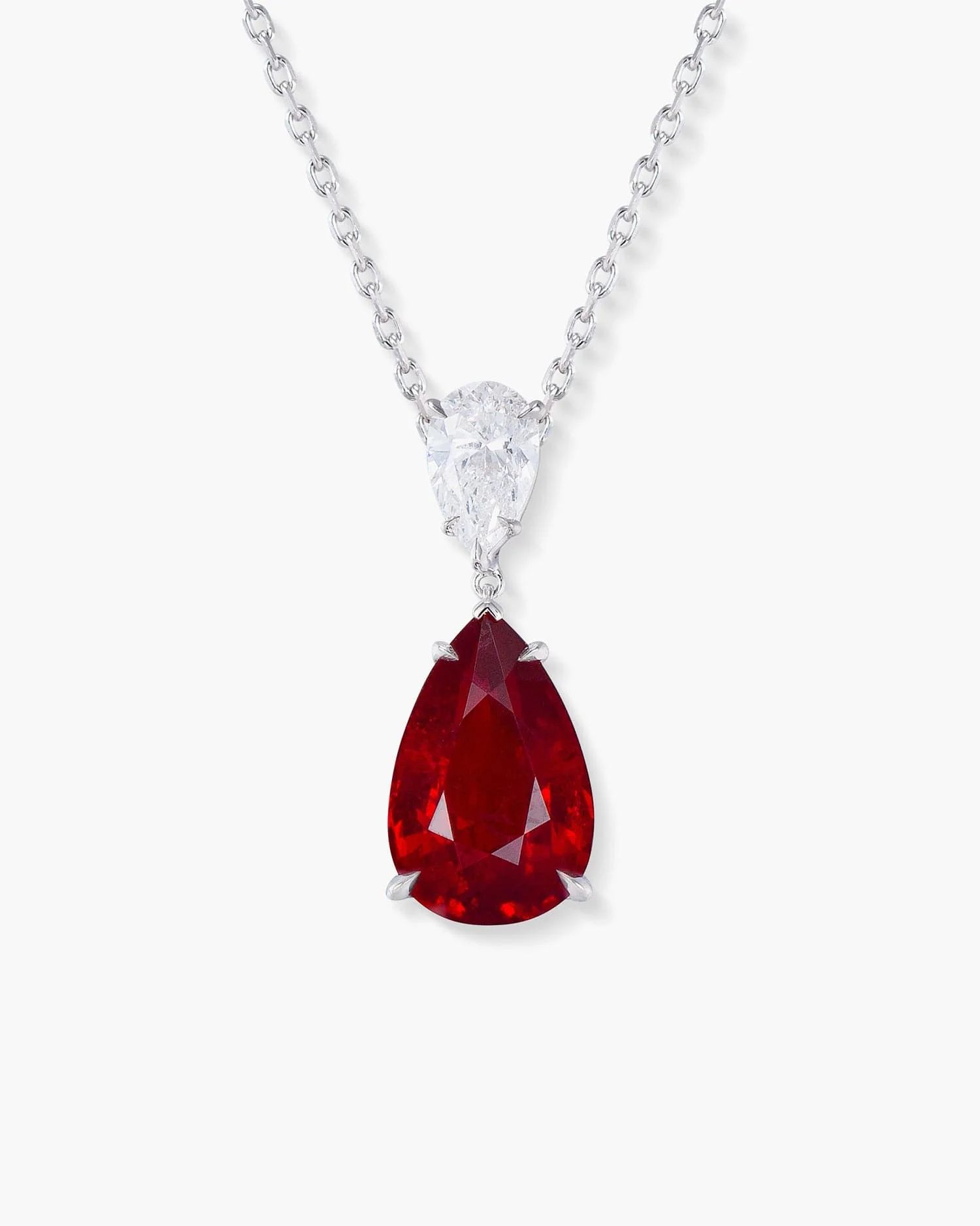 3.14 carat Pear Shape Burmese Ruby and Diamond Pendant Necklace | Central 🇭🇰