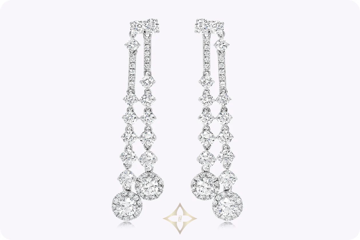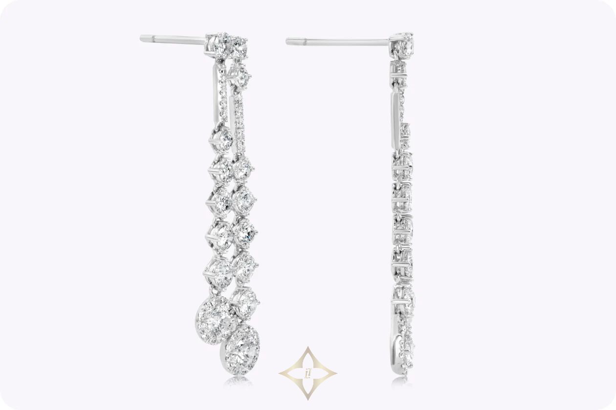 3.34 Carats Total Round Brilliant Cut Diamond Drop Chandelier Earrings in White Gold | NY 🇺🇸