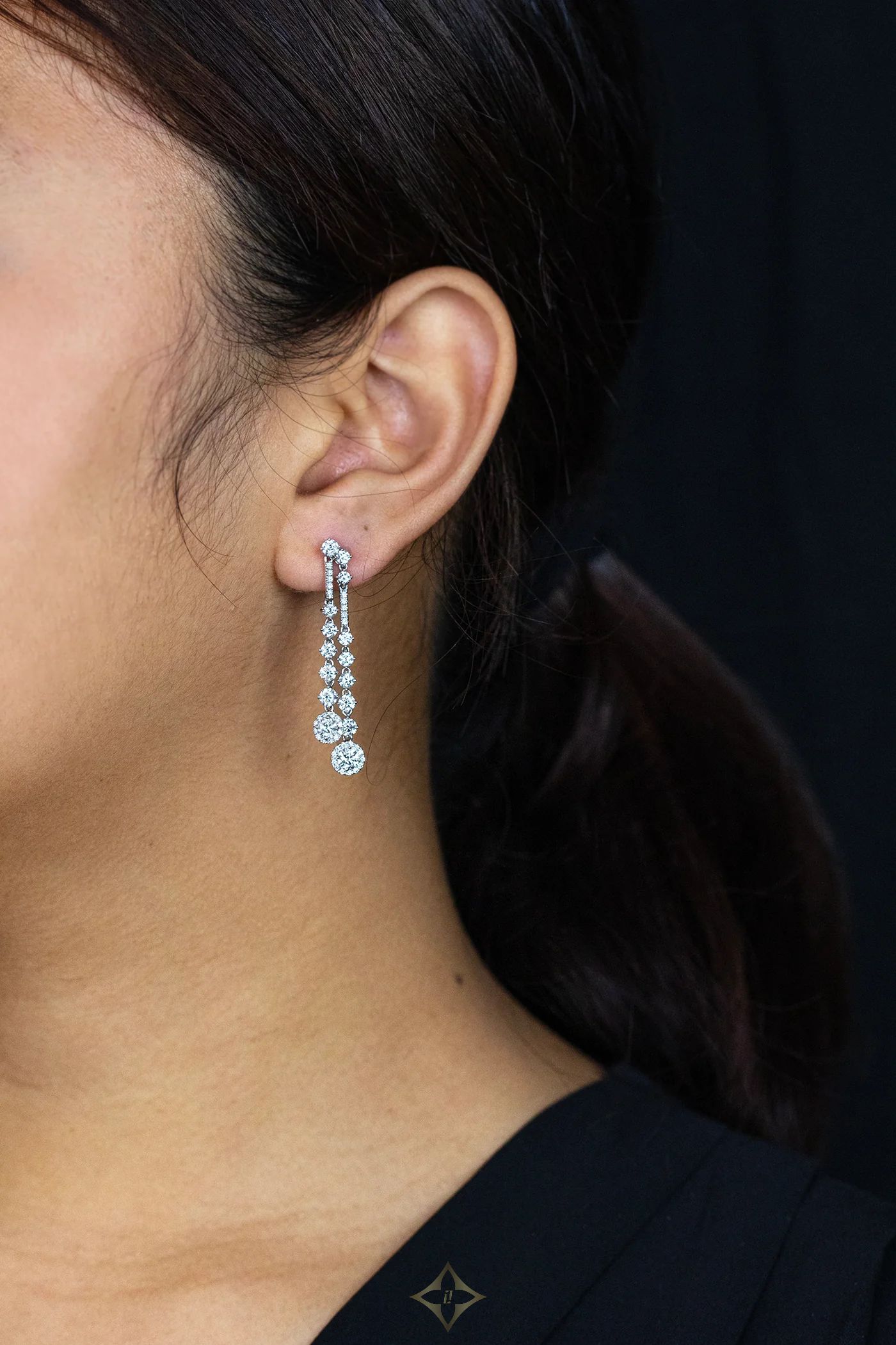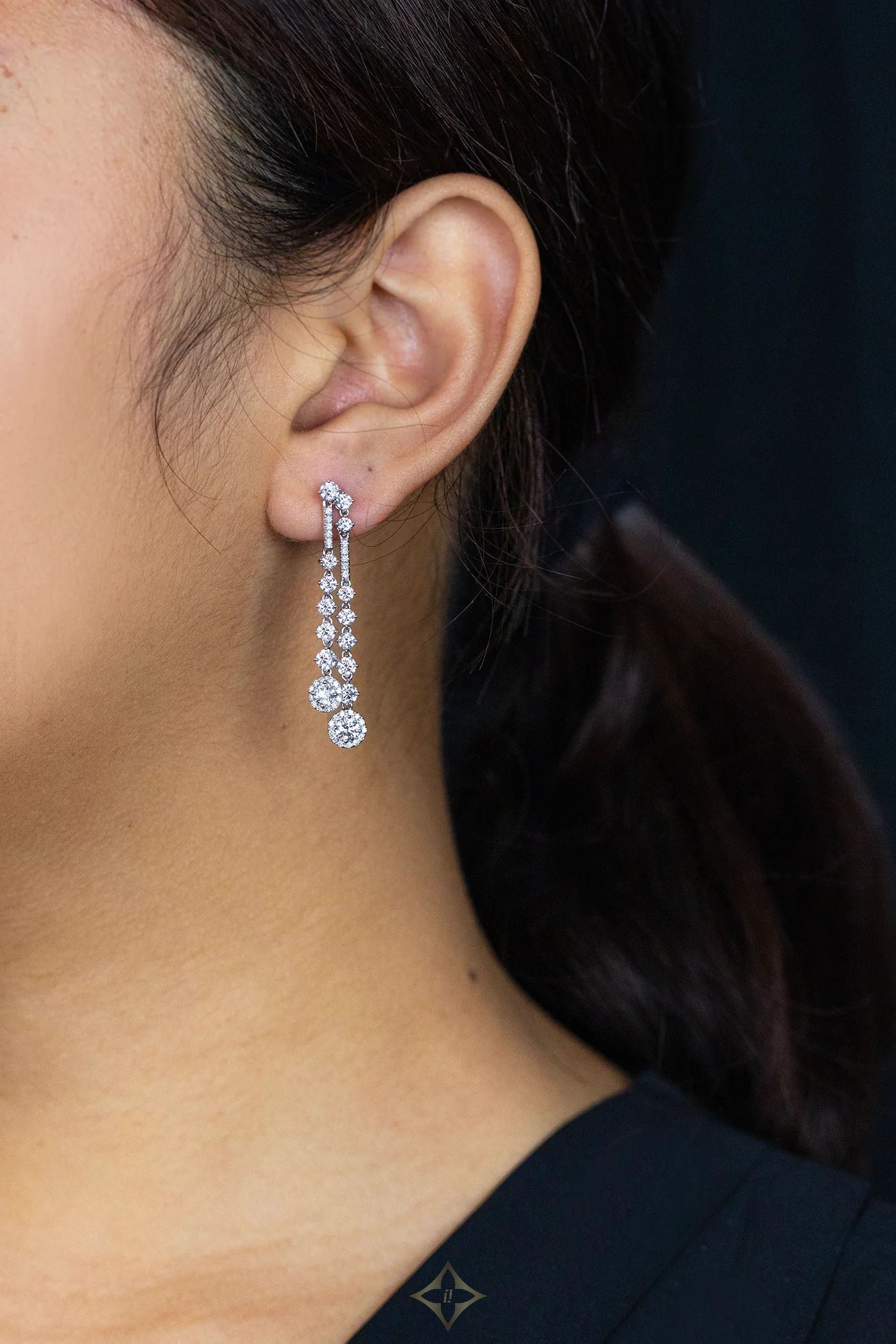 ROMAN MALAKOV FINE JEWELRY - NEW YORK, NYC 3.34 Carats Total Round Brilliant Cut Diamond Drop Chandelier Earrings in White Gold Price: $12,150.00 DEAR1016/1 A classy pair of drop earrings, featuring round brilliant cut diamonds weighing 3.34 carats total with E-F Color and VS-VVS Clarity. Finely set on 18K white gold. Perfect for casual or formal wear. Roman Malakov Diamonds