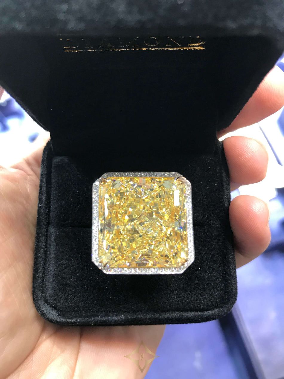 40 CARAT FANCY YELLOW DIAMOND RING RADIANT CUT VS2 PLATINUM & 18K GOLD BY MIKE NEKTA Price: $2,200,150 Ring Size: 6.0 TrueFacet promises authenticity of our products. 40CARATFAN-624577AAA8976 Never Worn Platimun Yellow Diamond WYNN 40 CARAT RADIANT CUT NATURAL FANCY YELLOW DIAMOND ENGAGEMENT RING BY MIKE NEKTA NYC GIA Certified Center Diamond: Carat Weight: 40 Carats Color: FY NATURAL, FANCY YELLOW, EVEN Style: RADIANT / CUT-CORNED SQUARE MIXED CUT Ring: Metal: PLATINIUM & 18KW Size: Can be adjusted to any size TrueFacet 36 West 47th Street, Suite 603, New York, NY, United States, New York Phone: +1 800-690-3736 Email: support@truefacet.com
