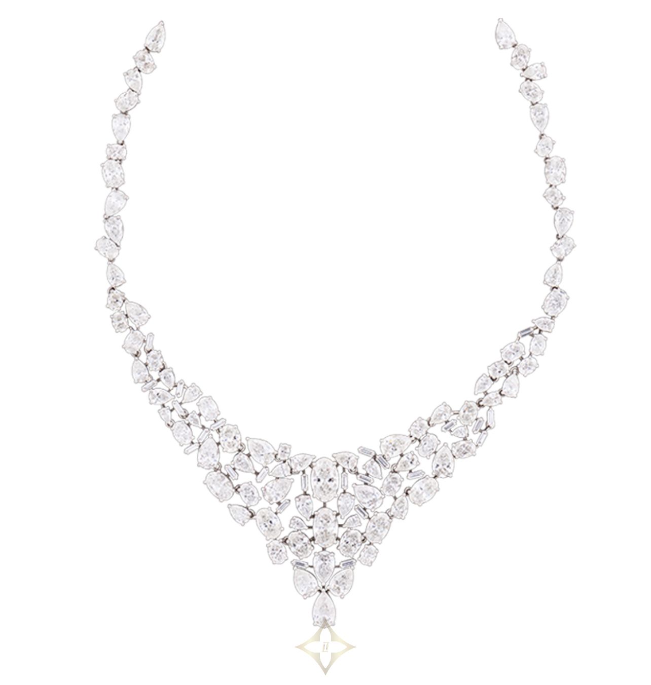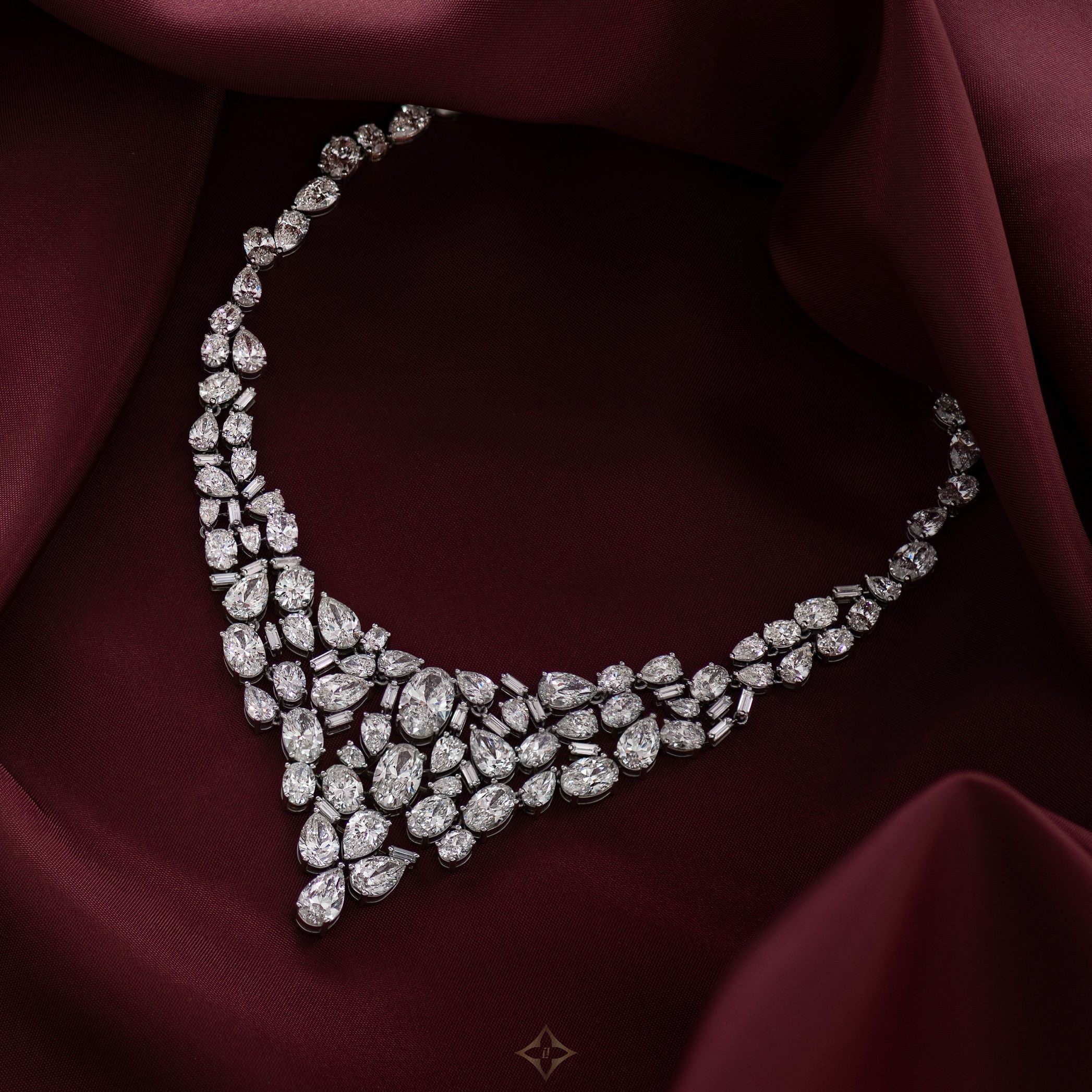 The Mosaic necklace is a masterpiece, set with 54.19 carats of diamonds which have been carefully mounted to drape around the neckline and move with the wearer.