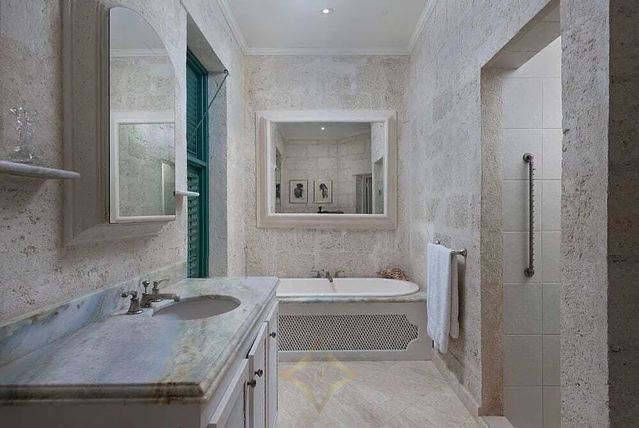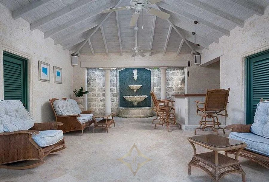 Spanning approximately 9,000 sq. ft., Sundial is the embodiment of refined island living. The home showcases high ceilings, antique furnishings, koi ponds, and Messel-style shutters, seamlessly blending colonial charm with modern comfort. The layout features five en-suite bedrooms in the main residence, and a two-bedroom, two-bathroom guest cottage adjacent to the pool—ideal for visitors or independent family members.