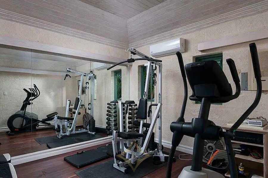 The grounds are a true oasis. Mature gardens filled with flowering plants and koi ponds surround a classical swimming pool—a picture-perfect scene. A charming gazebo with a circular dining table offers a romantic setting for al fresco meals, while the pavilion features a gym, coral stone bar, and changing room, ideal for hosting guests or relaxing after a swim.