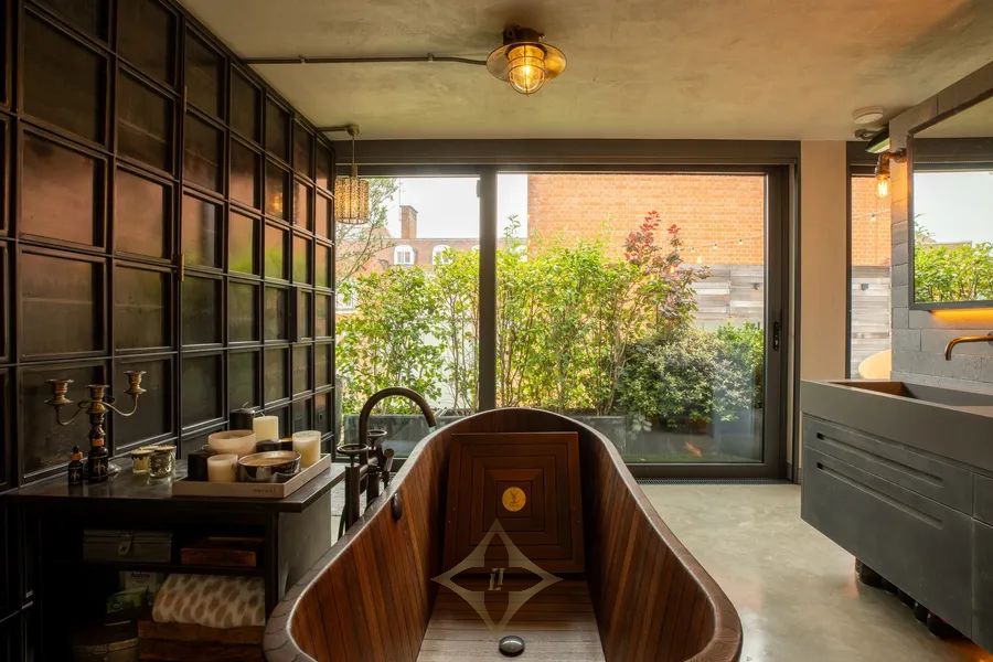 The car slows as you turn onto Lawn Lane. Ahead, a grand Victorian warehouse stands with quiet confidence, its brickwork softened by time. Through a gated forecourt, the concierge greets you and guides you to the lift. The doors close, carrying you above the park until they open into a private hallway bathed in natural light. A few steps forward and the space unfolds like a gallery opening. Ceilings rise to twenty feet, drawing the eye to an immense arch of Crittall glazing that frames the park in a single, living composition. Polished concrete floors flow seamlessly beneath you, catching the movement of light as the day passes. Sunlight drapes across steel beams, the deep texture of Shou Sugi Ban cabinetry, and the sculptural granite island, a place to gather over a bottle of Sassicaia before moving to the terrace for dinner. Behind a weighted steel screen, the preparation kitchen and pantry stand ready, ensuring every occasion is as effortless as it is memorable. Beyond the glass doors, the first of three private terraces invites a slower rhythm. The air is still, carrying the faint green scent of the park below. From here, step into a guest suite that feels like a discreet wing of the home, its rough-rendered walls catching the afternoon light. In the en-suite, a porthole window nods playfully to the building’s industrial heritage, the kind of detail that sparks conversation. The steel staircase curves upward, its treads illuminated by the atrium above. At the galleried landing, three bedroom suites each open onto their own terrace, offering a private moment with the skyline. The principal suite is a place to retreat, its dressing room leading to a semi-open-plan bathroom where Italian-tiled walls frame a handcrafted teak bath, made by an Estonian boatmaker to hold the warmth of the water as you linger with a book and a glass of wine. Step out to the upper terrace and the view is uninterrupted. The Shard and the City rise in the distance, while the park below turns to gold in the evening light. Every element has been considered. Acoustic insulation hushes the city. Lutron lighting shifts the mood from sunrise to nightfall. Air conditioning and underfloor heating keep the home comfortable in every season. Life here flows with ease. Mornings might begin with coffee in Bonnington Square, followed by a short walk to Vauxhall Station for a swift connection to the West End or the City. Return to find the concierge has received your deliveries. Evenings could be spent at Battersea Power Station, along the South Bank, or at one of Westminster’s cultural landmarks. Eurostar at St Pancras is within half an hour for weekends in Paris, while Heathrow, Gatwick and City airports are just as accessible for longer escapes. And always, the return, the quiet of the penthouse, the terraces lit against the skyline, and the sense that there is nowhere else you would rather be.