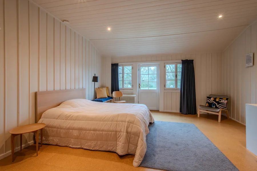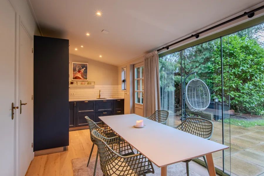 Also located in the garden is a beautifully designed guest house of approximately 40 m², complete with a cozy gas fireplace, bedroom, bathroom, and fully equipped kitchen. The glass sliding doors can be fully opened in summer, while in winter they remain closed without obstructing the garden view.