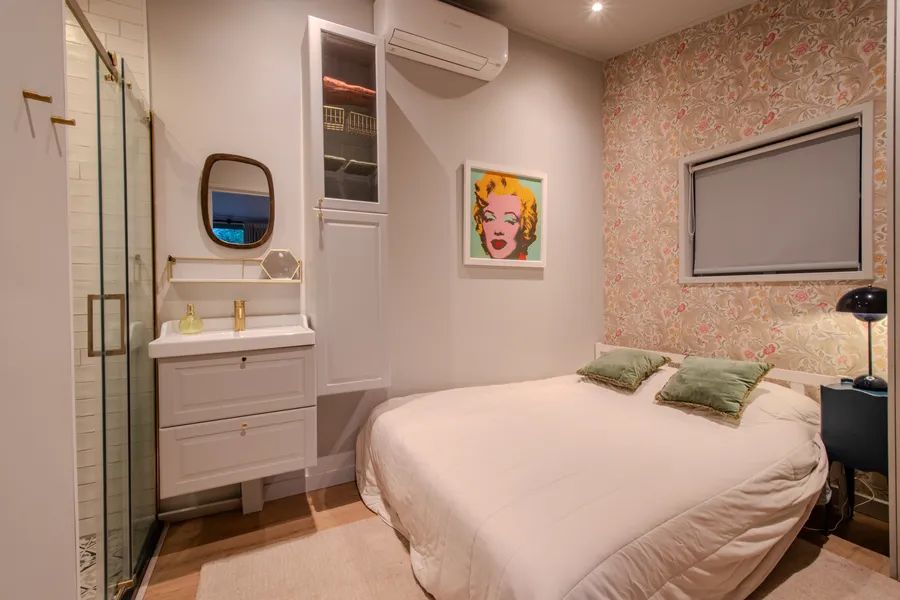 In addition, the floor features a generous walk-in closet and two luxurious bathrooms with underfloor heating. The main bathroom is equipped with a steam shower, bathtub, and double washbasin, while the second bathroom offers a steam shower and a Finnish sauna. The combination of authentic details, high-quality finishes, and abundant natural light creates a serene, elegant, and refined living experience.