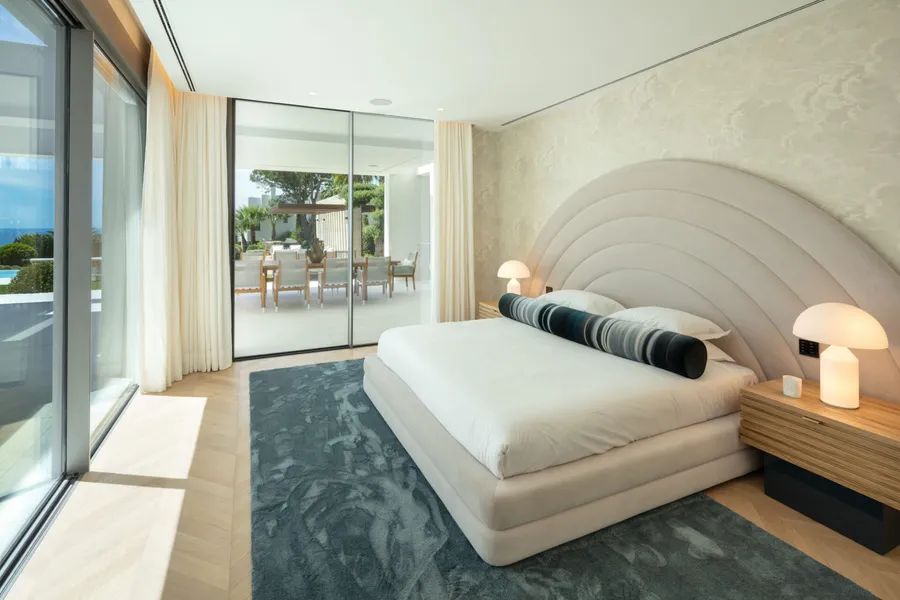 The second level houses a private relaxation haven with four bedrooms, each featuring dressing rooms, bathrooms, and abundant natural light. The bedrooms boast a blend of Nordic purity and contemporary-chic sensuality, adorned with top-quality materials and finishes.