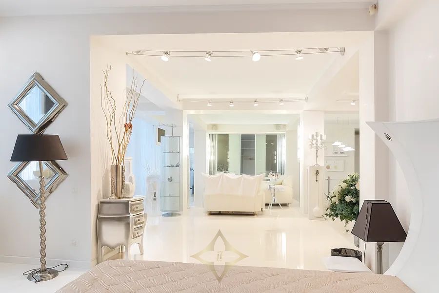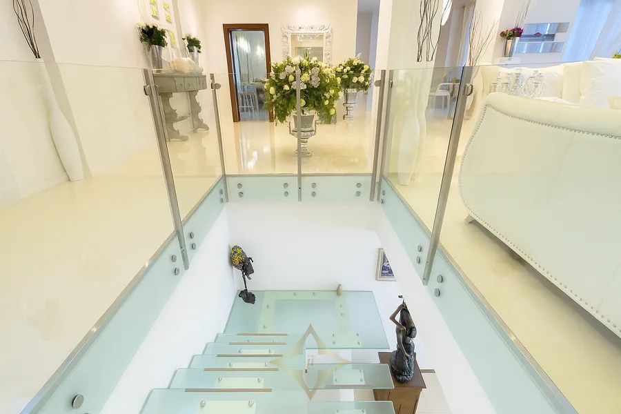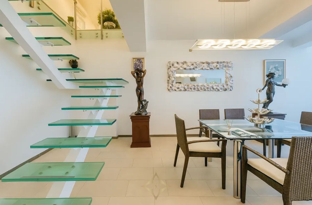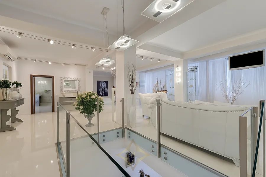 Inside, the apartment showcases premium finishes: floor-to-ceiling panoramic windows, VRF air conditioning, triple-layer oak flooring, and high-end fixtures by Grohe, Bosch, and Villeroy & Boch. The interior design is minimalist yet warm — the essence of contemporary luxury.