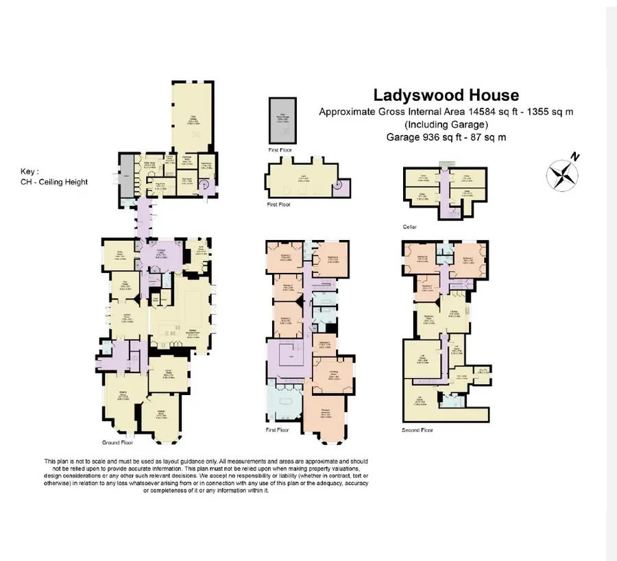 Arranged across three principal floors and extending to approximately 13,648 sq ft, Ladyswood House has been extensively restored and refurbished to create a sophisticated and highly practical family home. The interiors retain a sense of grandeur, with generous ceiling heights and well-judged room proportions, while the restoration has introduced a contemporary ease that suits modern living and large-scale entertaining alike