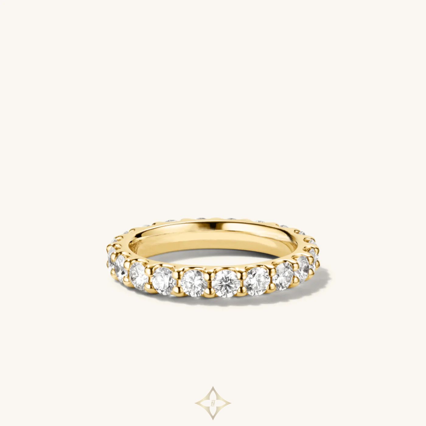 Finding a ring you’ll love for a lifetime is something to celebrate. Here it is: a bold ring handcrafted in 14k solid gold featuring as many as 22 round brilliant cut diamonds. Each diamond is hand-set in a basket of open prongs to enhance the sparkle.