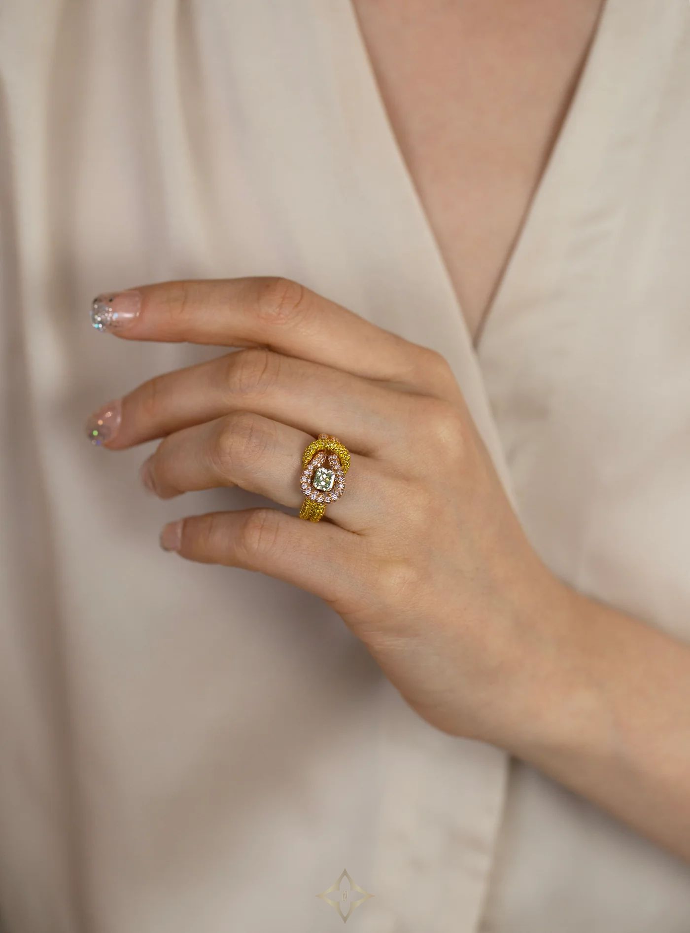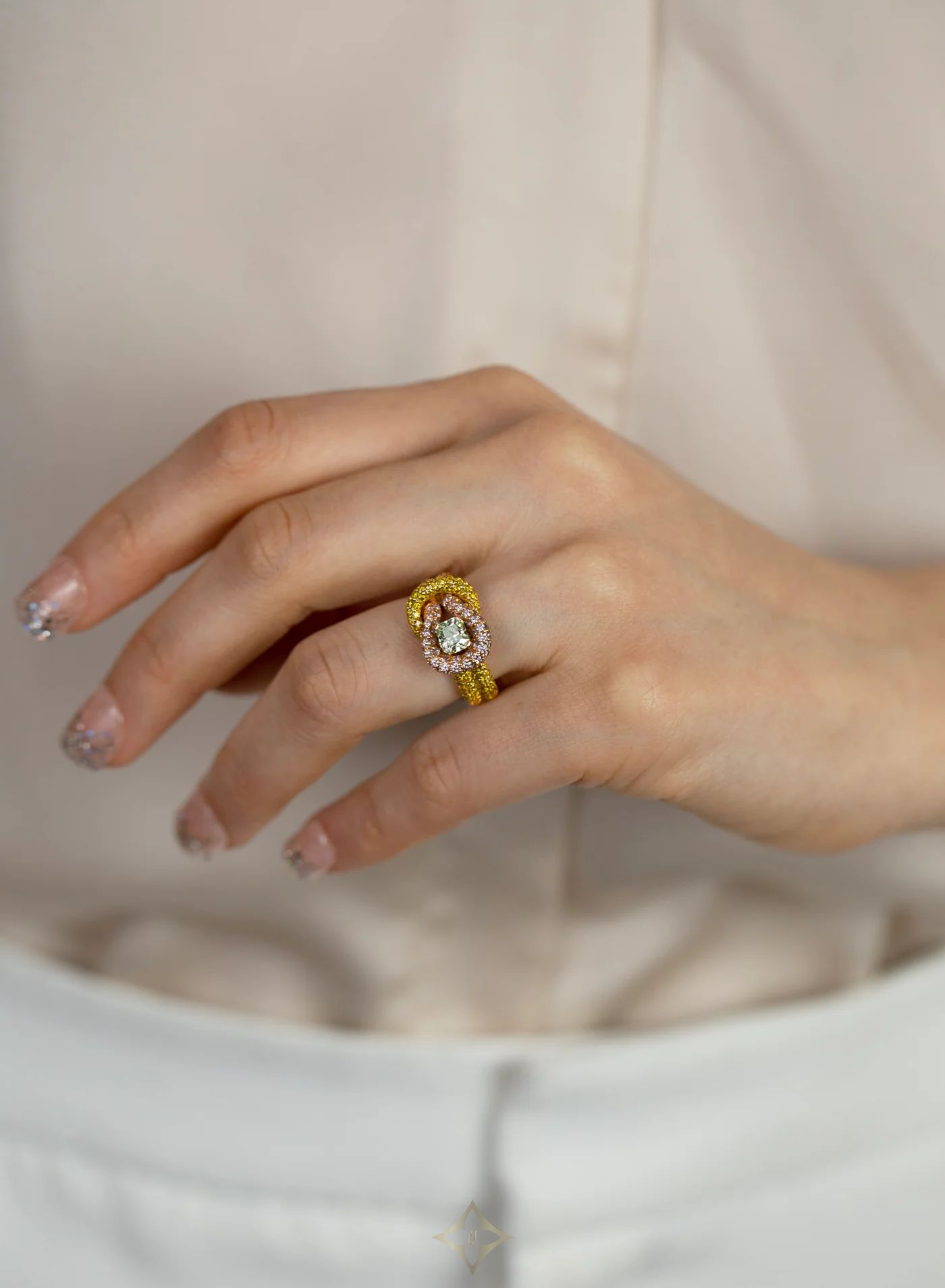 GIA Certified 0.70 Carat Green Diamond Intertwined Knot Fashion Ring in Rose Gold | New York 🇺🇸