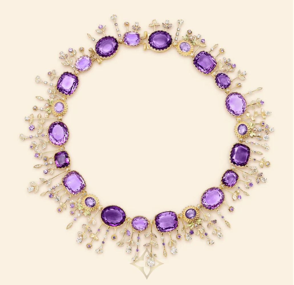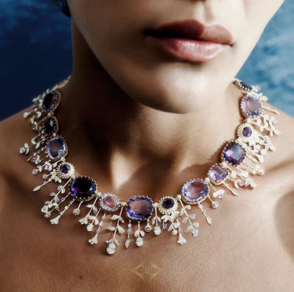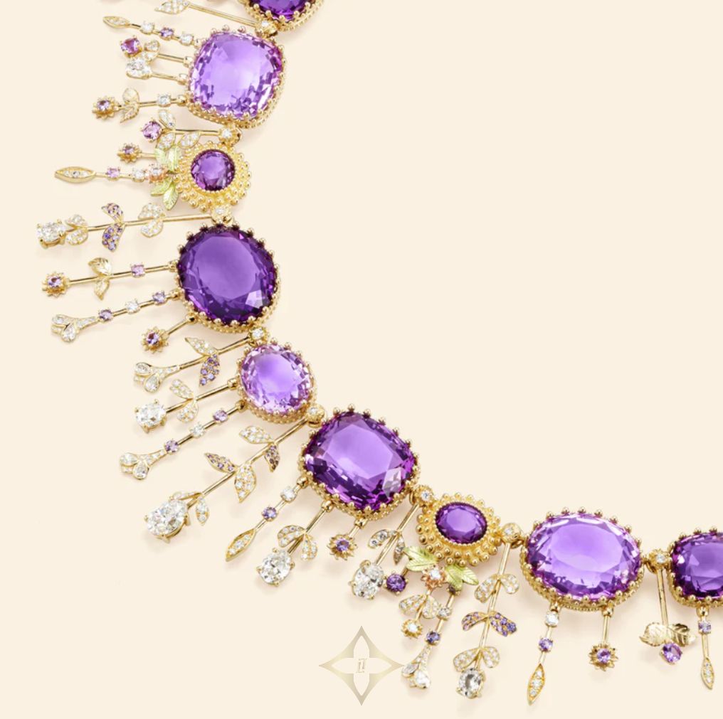 JARDIN PIERRERIES NECKLACE AMETHYSTS Yellow gold, pink gold, and green gold necklace with diamonds, purple sapphires, and amethysts | Paris 🇫🇷