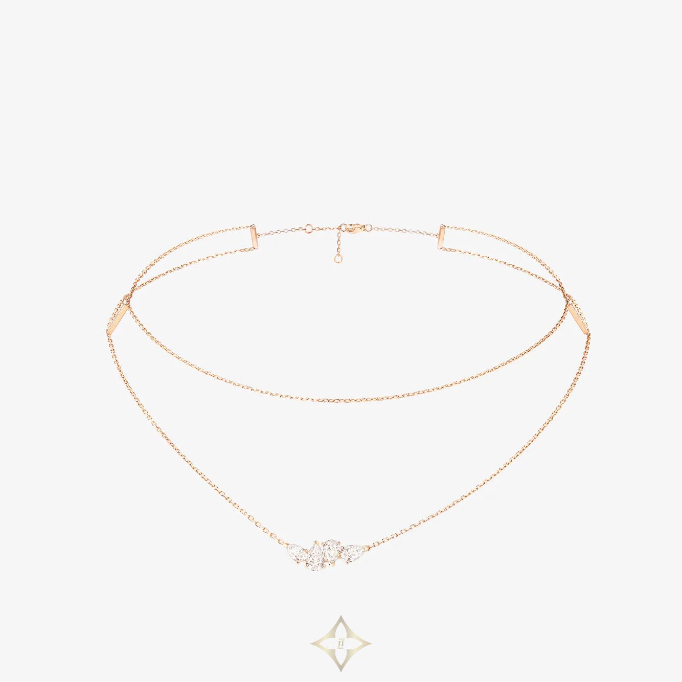 An unconventional and powerful necklace in pink gold that reinterprets the codes of Serti sur Vide in a very refined way