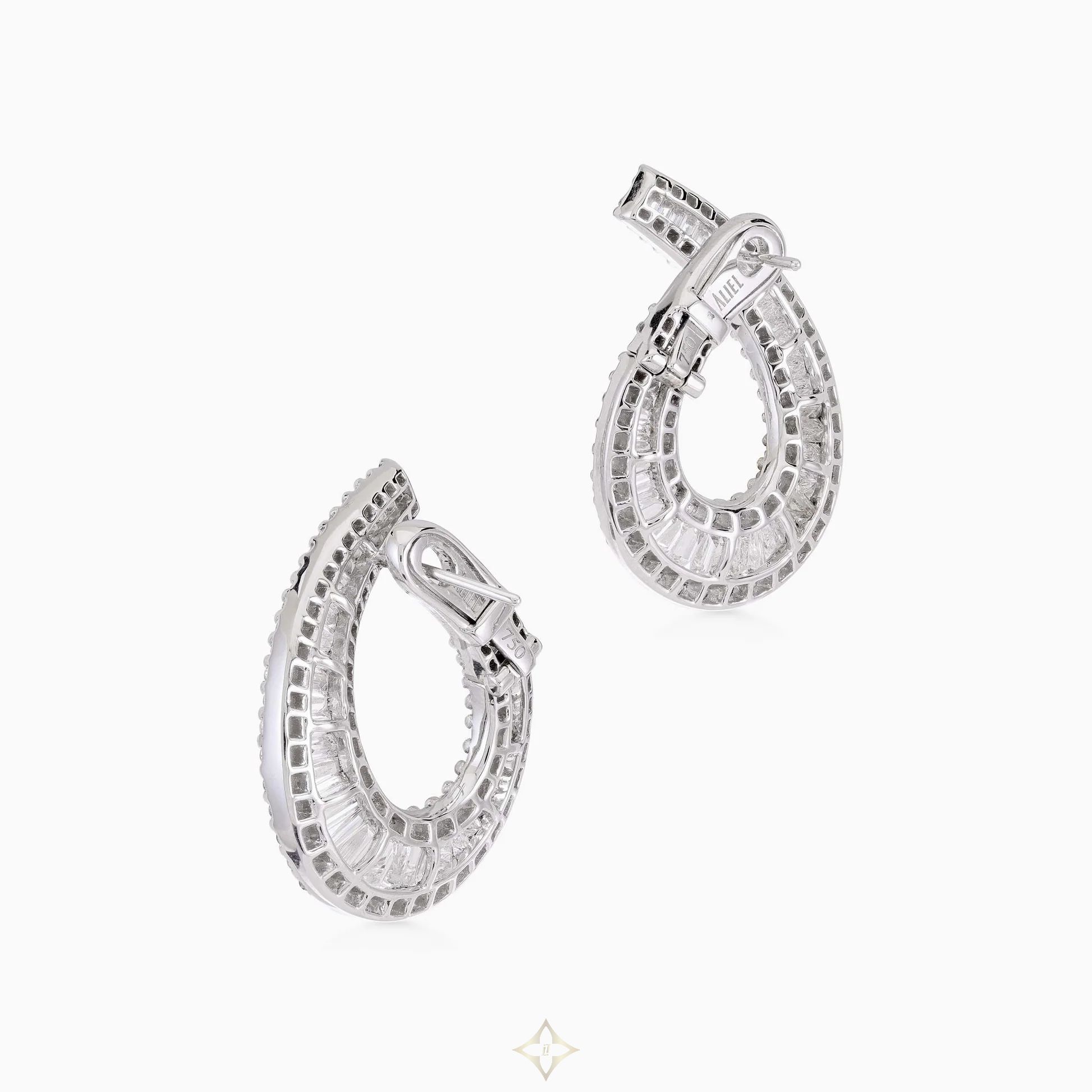 Taper Diamond Earrings An elegant pair of hoop shaped earrings set with taper diamonds in white gold. Product Details Technical Information Taper shaped diamonds 3.44 carats, F/G colour, VVS2 VS1 clarity Small brilliant diamonds 2.06 carats, F/G colour, VVS2 VS1 clarity 18 Karat white gold Reference: DEN05415 Regular price: $12,500.00 ——— Aliel Jewellers Phone: +971 50 550 4517 WhatsApp: +971 56 336 9299 Email: enquiries@aliel.com SHOWROOM LOCATION * U.A.E. Dubai Khalil Al Sayegh Jewellers Al Maktoum Street Deira, P.O.Box 3112, Dubai, UAE Phone: +9714 2217999 Email: info@aliel.com * Pakistan, Lahore Shop # 51/64, Shopping Arcade, Pearl Continental Hotel, Mall Road, Lahore- Pakistan Phone: +92(42) 3636 2660 Email: lahore@aliel.com