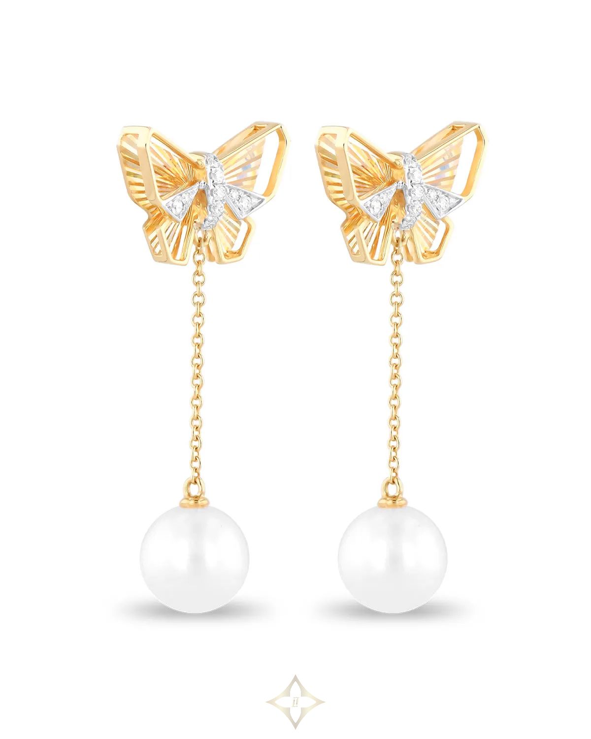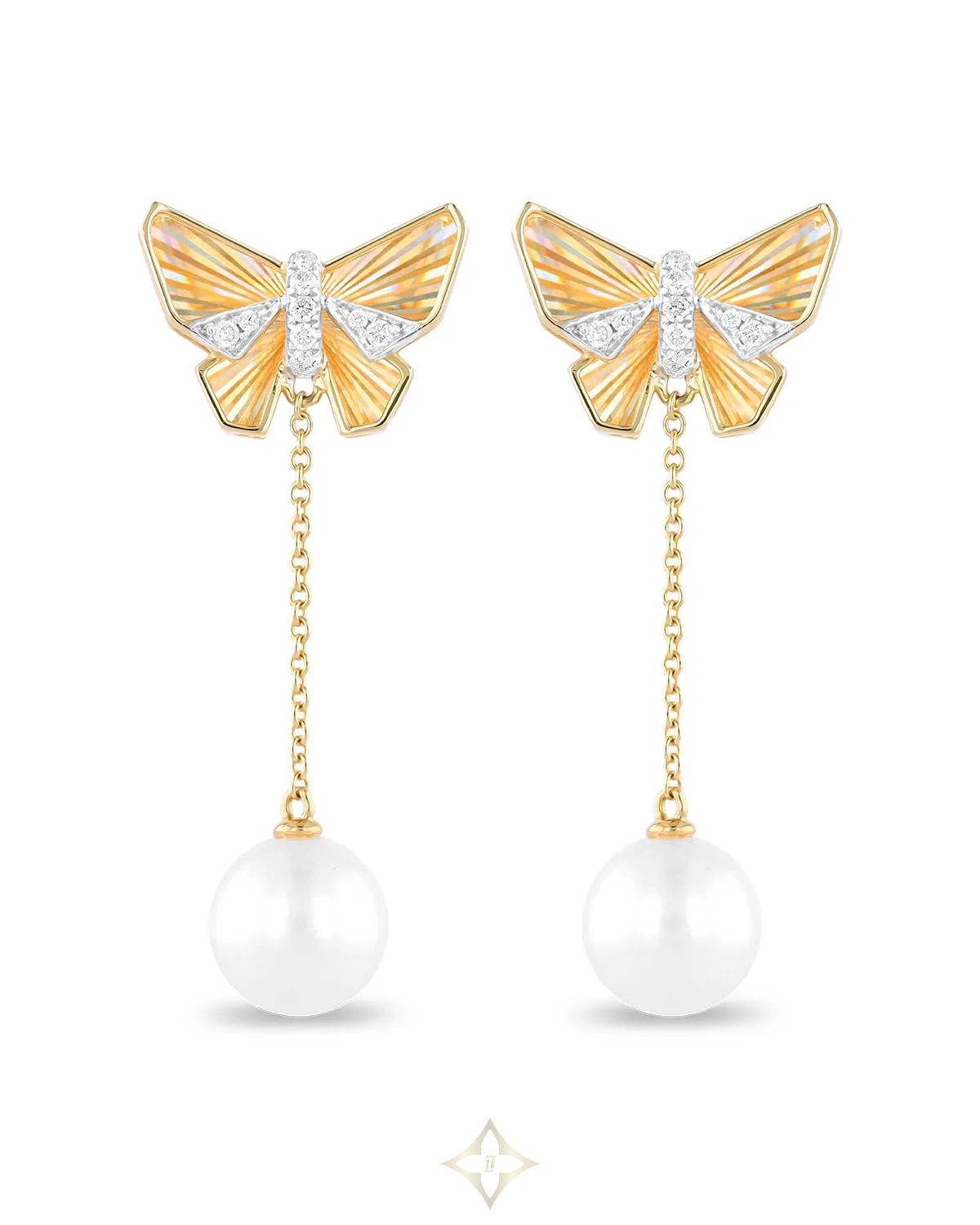 As if nature had whispered a secret to the jewelry store. These earrings are the result of that fleeting moment where the dreamlike becomes real. Pearls, diamonds and butterflies that not only adorn: they inspire.