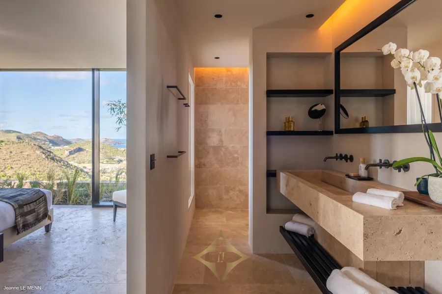 Entrance gallery leading to living room, dining room and open-plan kitchen. Terrace and outdoor dining room. 4 suites with bathrooms. Top-of-the-range amenities. 5-minute drive to beaches, shops and Gustavia harbor.