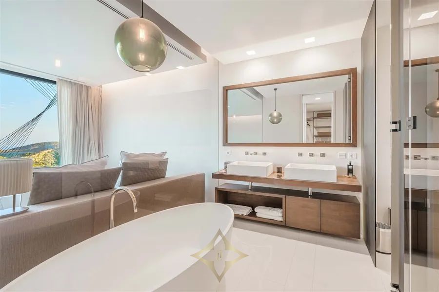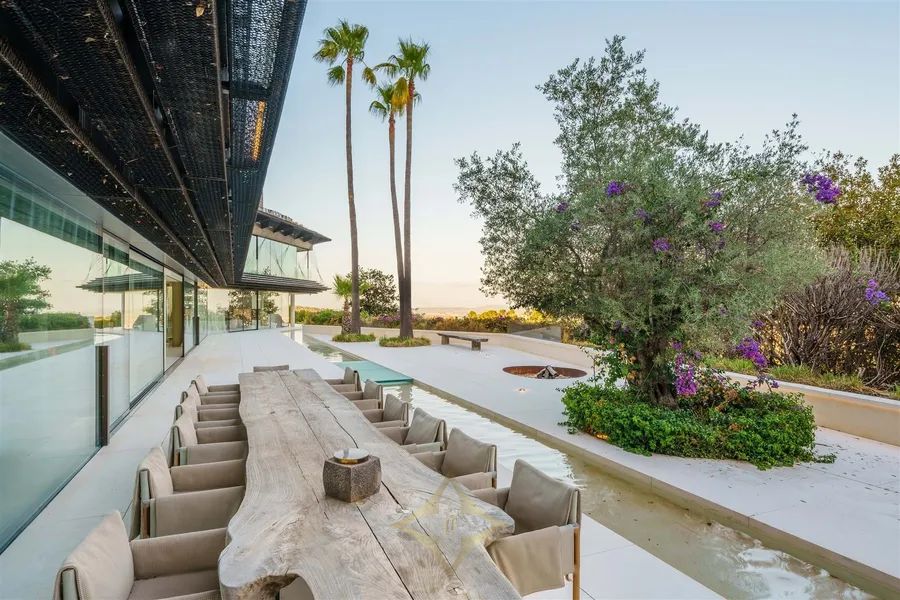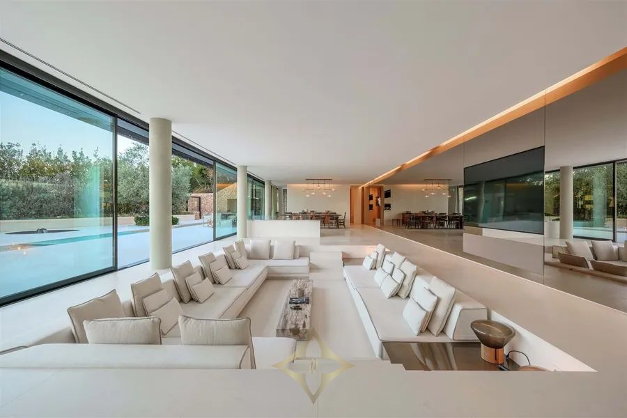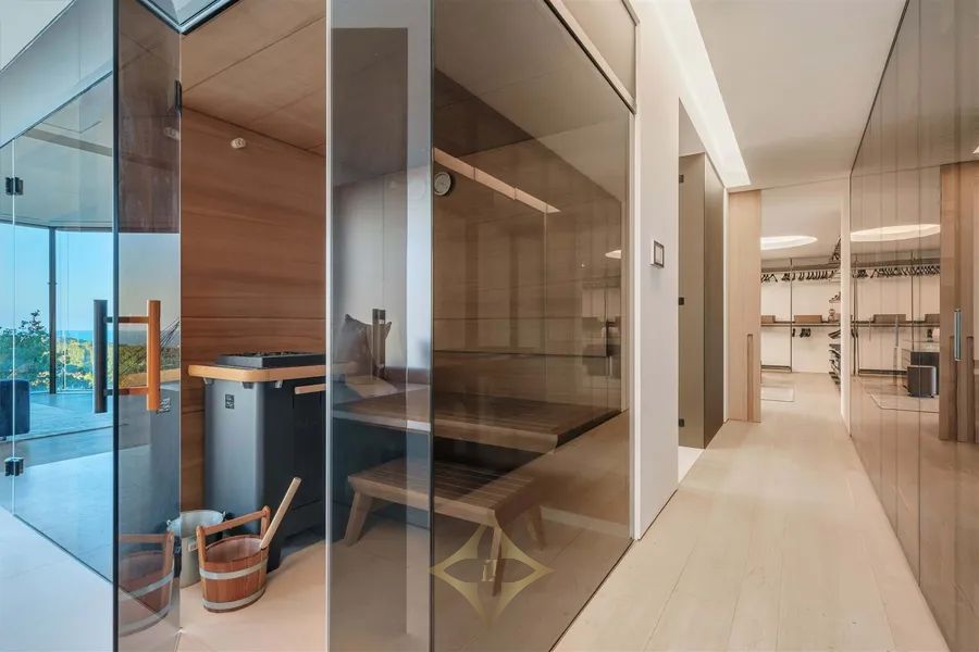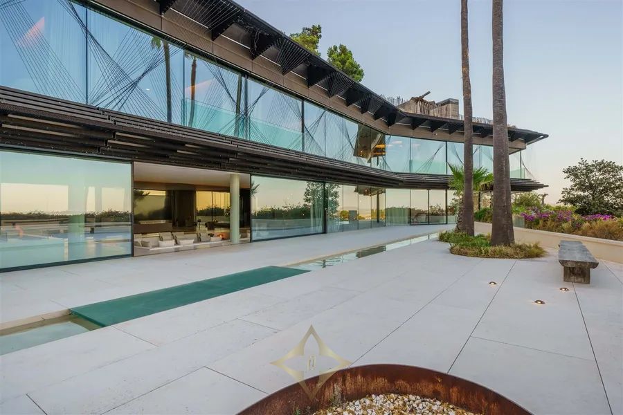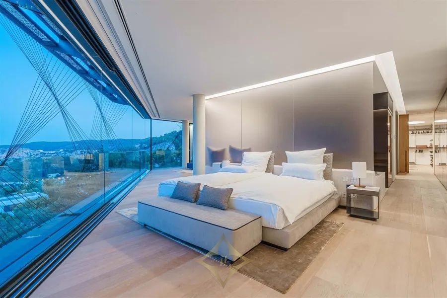 Introducing Villa Solitaire. Nestled atop the exclusive hill of Son Vida, in what is often referred to as the Beverly Hills of Mallorca, stands a luxurious villa that epitomizes opulence and architectural brilliance. This masterpiece, meticulously designed by the renowned architect Matteo Thun, commands the most coveted position in this exclusive residential haven. Elevated on the pinnacle of Son Vida, this property ensures the utmost privacy, allowing you to bask in the lap of luxury without disturbance. With its southern orientation, the villa enjoys an uninterrupted embrace of the sun’s warmth from dawn to dusk, creating a perpetual ambiance of comfort and tranquility. Enveloped by vast expanses of glass fronts, the villa’s grandeur extends beyond its walls. Feast your eyes on an awe-inspiring panorama that sweeps over the sparkling waters of the Palma bay. You’ll find yourself captivated by the natural beauty that graces this unparalleled residence. Step inside this sprawling villa, where indulgence knows no bounds. With a total of seven spacious bedrooms, each an oasis of comfort and style, this haven ensures that both residents and guests find solace in luxury. Discover not just one, but two lavish pool areas that beckon you to unwind and refresh in absolute seclusion. The sprawling terrace, spanning approximately 2000m², presents an alfresco haven where you can enjoy in the Mediterranean breeze and the gentle kiss of the sun. Spanning across four meticulously crafted floors, this villa is a testament to thoughtful design and unmatched elegance. The ground floor boasts a spacious living area, an inviting dining space, and not one, but two fully equipped kitchens—a culinary aficionado’s dream. A wine cellar and bar await, promising evenings of fine sips and delightful conversations. Ascending to the first floor reveals a sanctuary of tranquility. Impeccably appointed bedroom suites and their accompanying en-suite bathrooms offer respite in the lap of luxury, ensuring that every moment spent here is one of sheer indulgence. Venture to the basement, where a world of wellness and relaxation awaits. Immerse yourself in a realm of serenity as you explore a zen garden, a fully-equipped gym, a rejuvenating sauna, a steam bath, and a lavish massage room. And for those seeking refuge, a separate staff wing with two bedrooms ensures that every need is met. For the connoisseur of automotive elegance, a sprawling garage accommodating up to 7 vehicles stands ready to house your prized collection. And as the crowning jewel, the rooftop terrace invites you to experience cinematic enchantment beneath the stars. An open-air, tulum inspired cinema sets the stage for unforgettable evenings, while a bubbling jacuzzi invites you to soak away your cares in the lap of luxury. Indulge in a lifestyle beyond compare, where every facet of luxury living is brought to life in this exceptional villa atop Son Vida. A creation of architectural brilliance, a haven of relaxation, and an embodiment of elegance, this residence stands as a testament to your discerning taste and uncompromising standards. Welcome to a life where opulence knows no bounds.